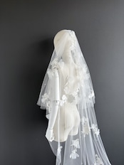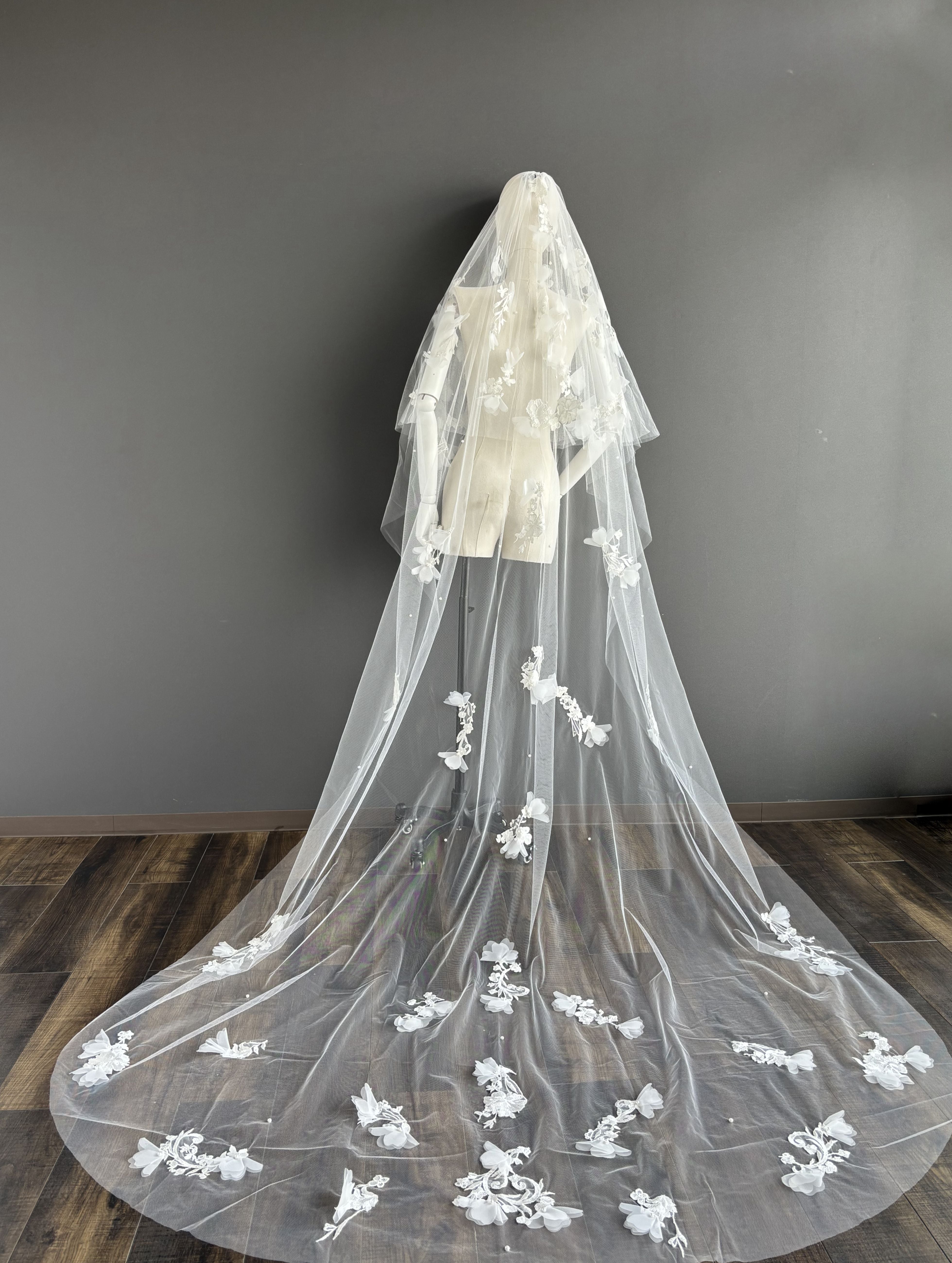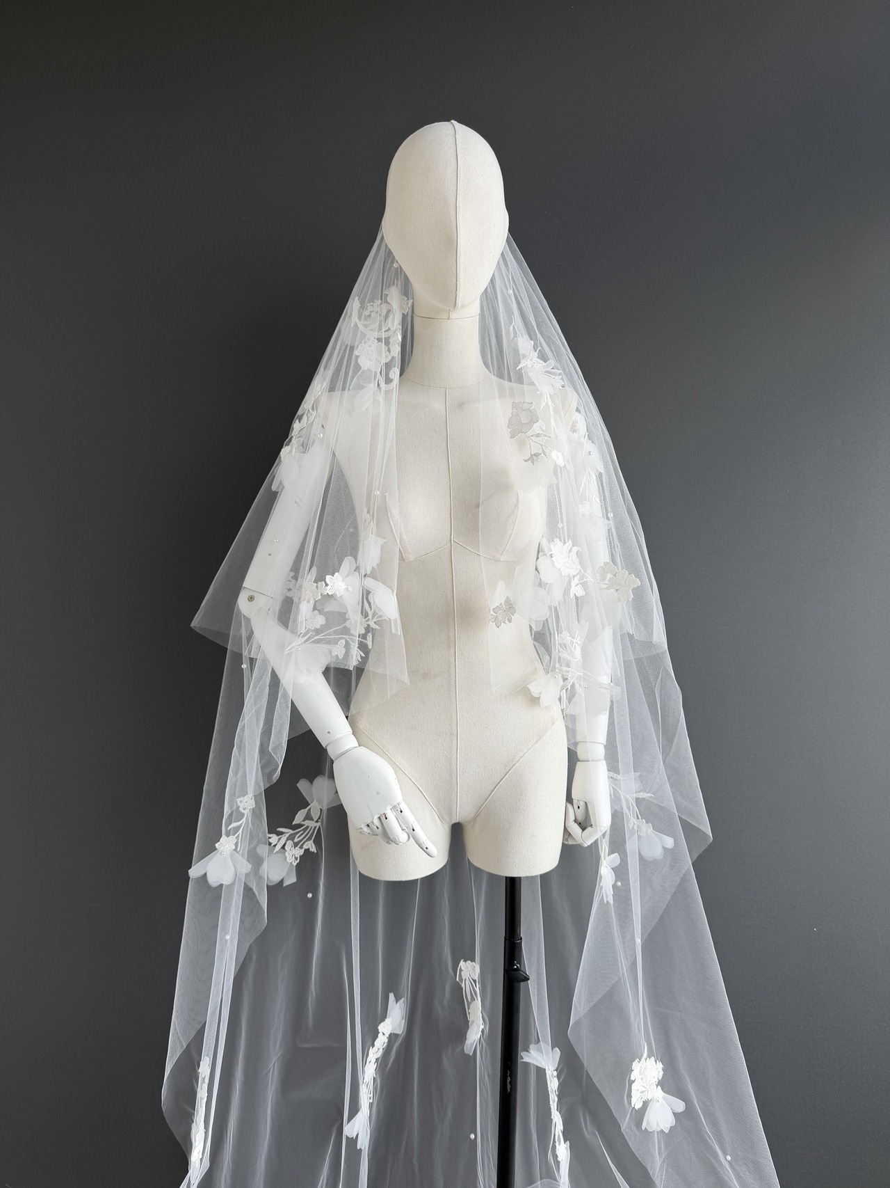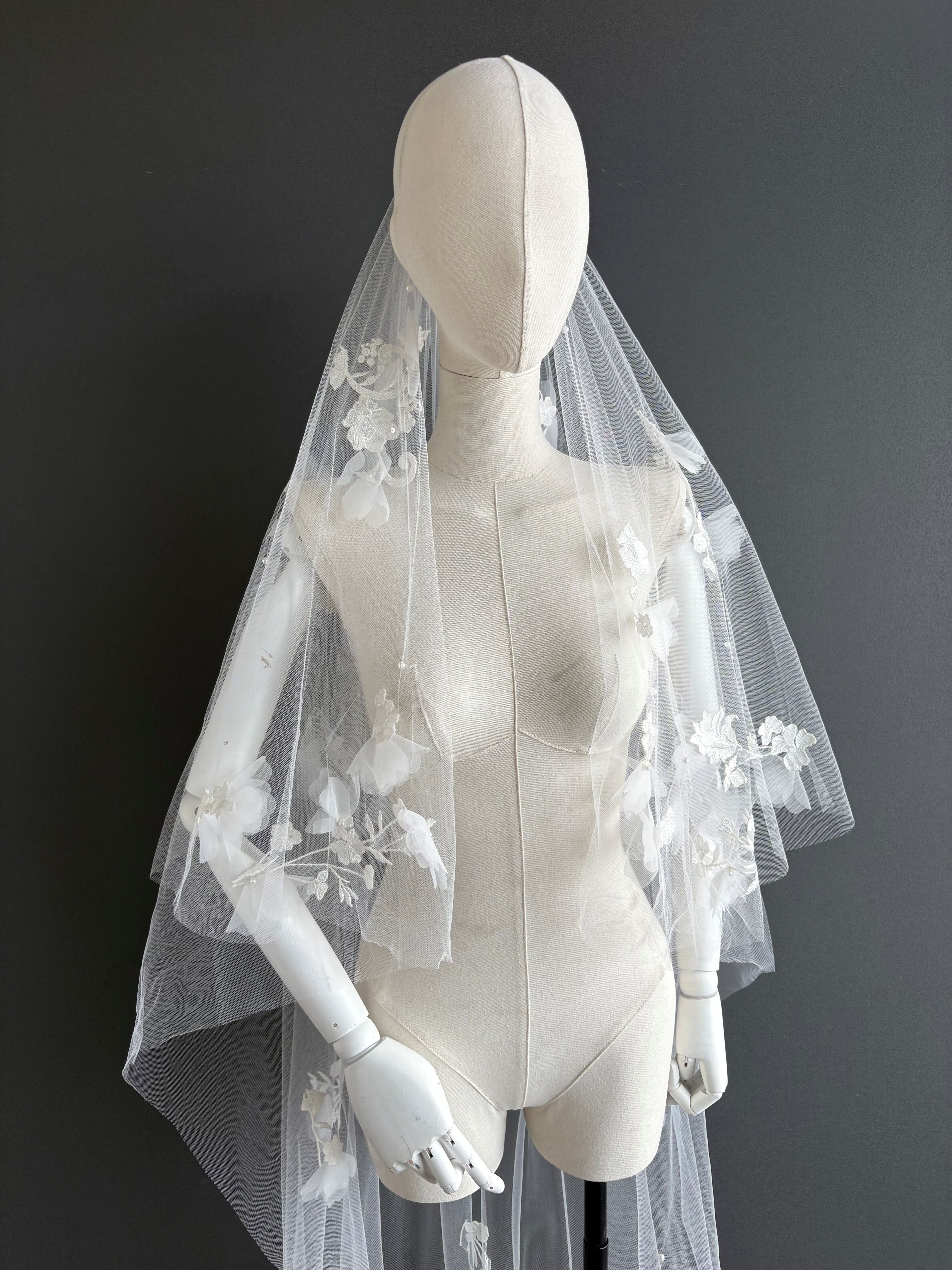 立体感と透明感のあるオーガンジーの3Dフラワーモチーフが印象的なレースベール。