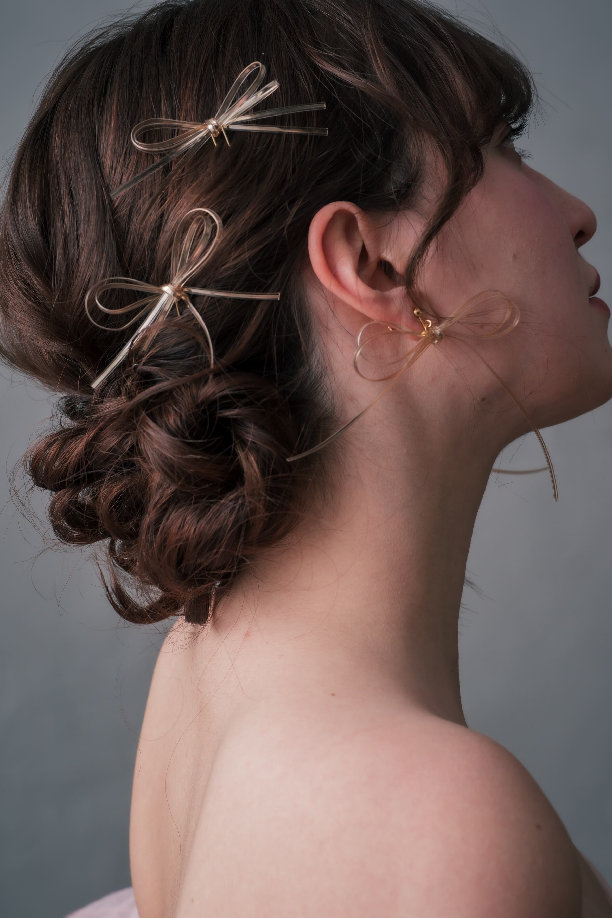 他にはない新素材「ナイロンコードリボン」を使ったリボンヘアピン。