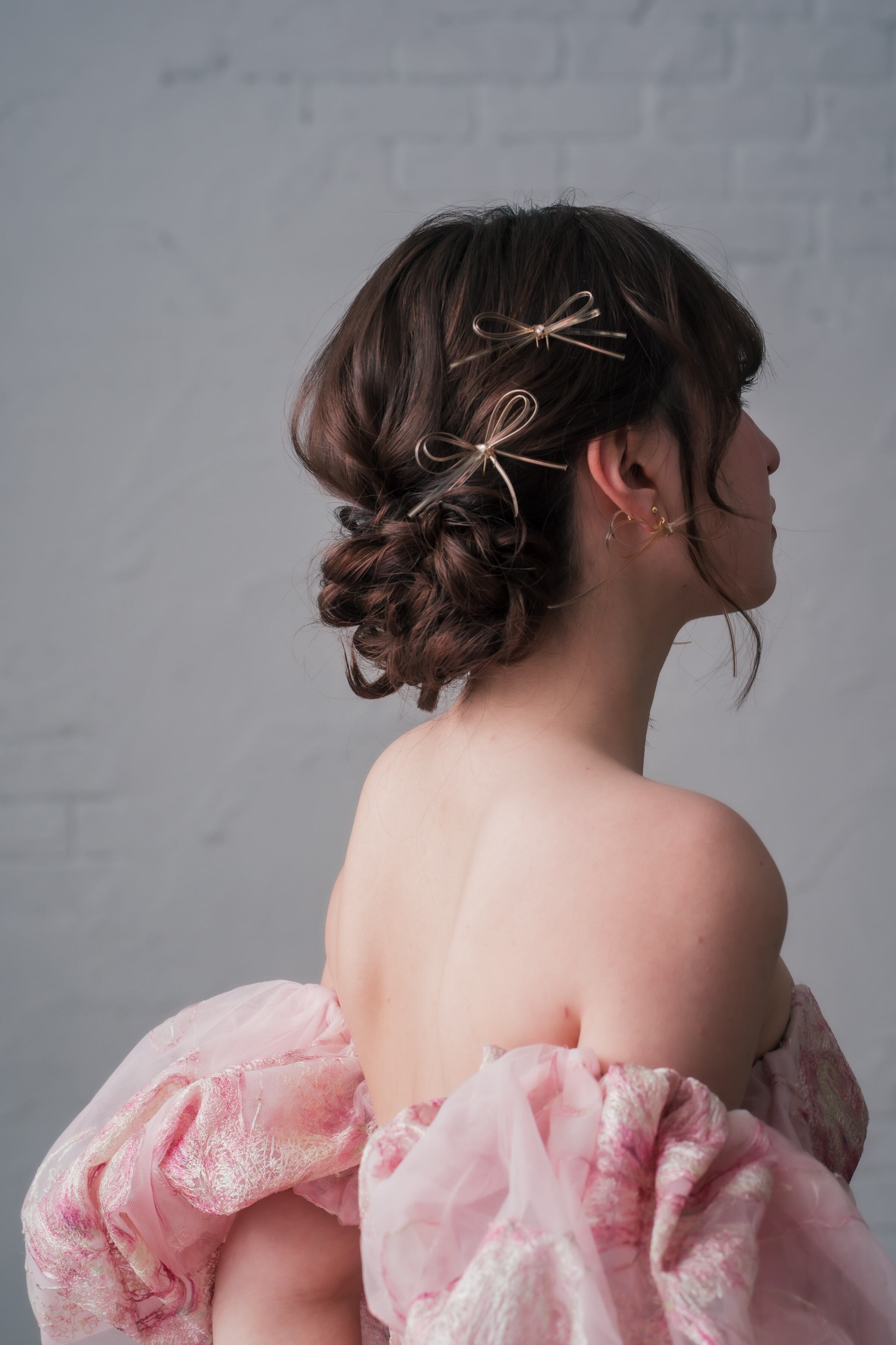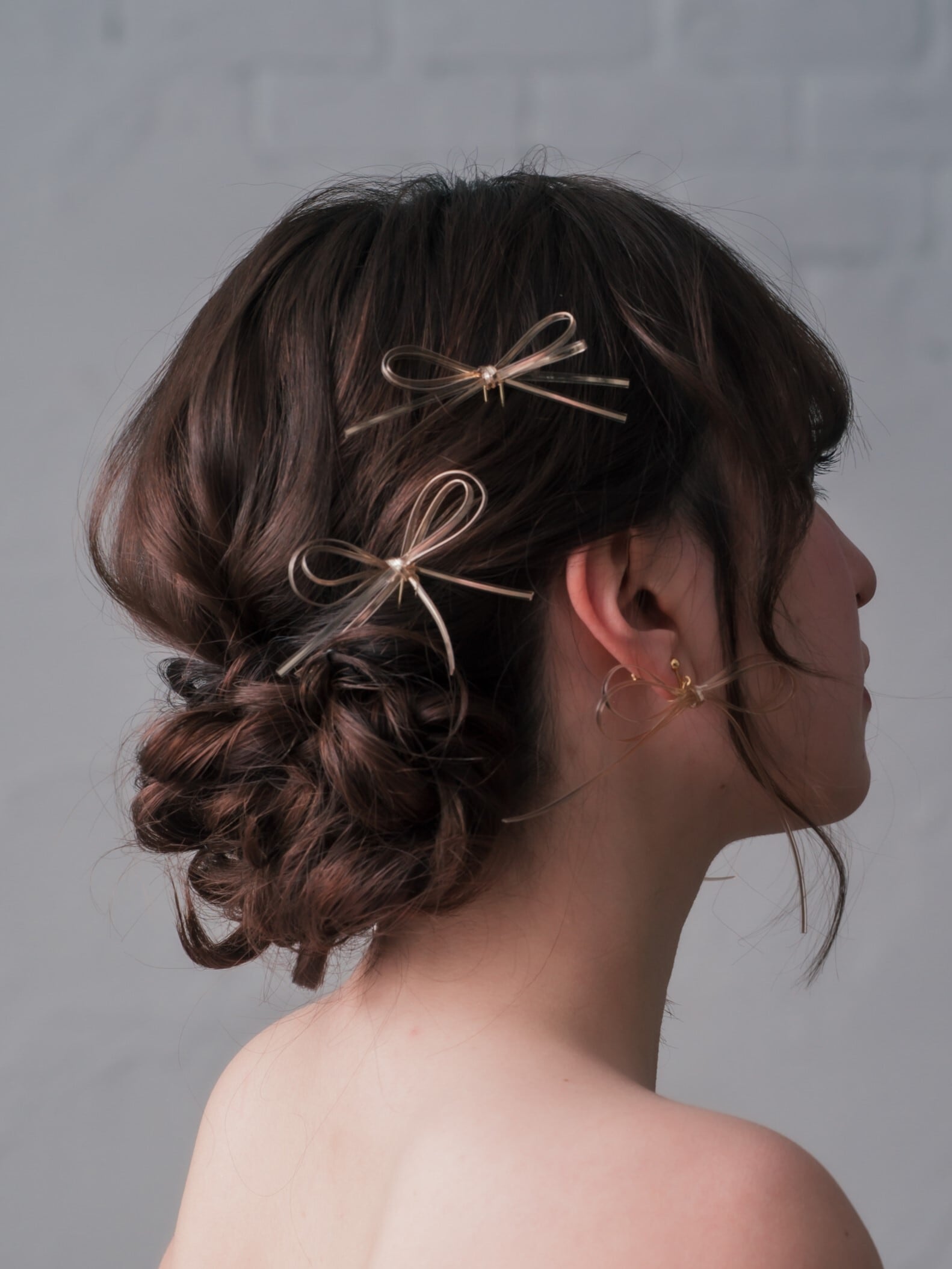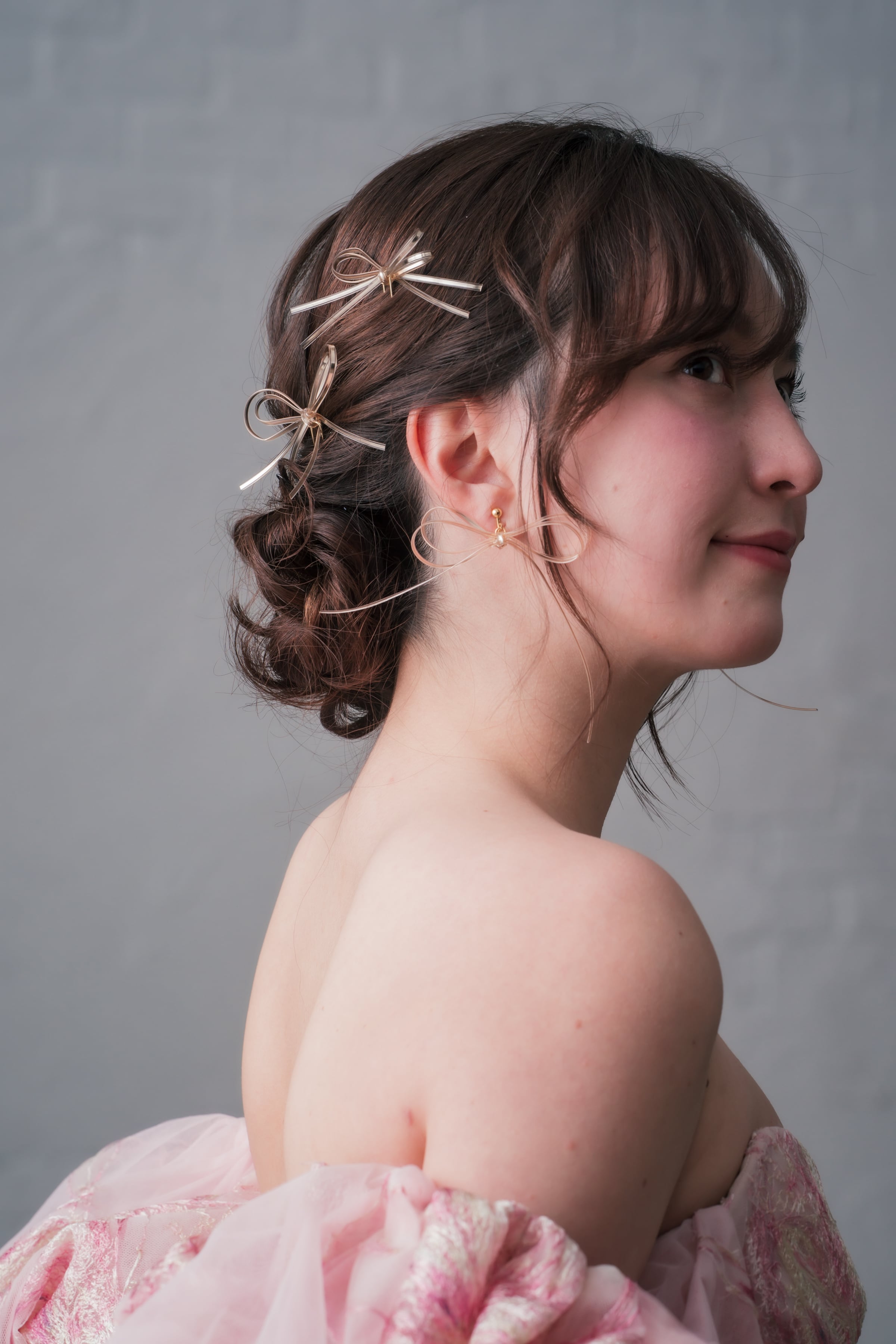 コードを2重に結い、ぷっくりした立体感と短めのリボンシルエットが可愛らしい印象。