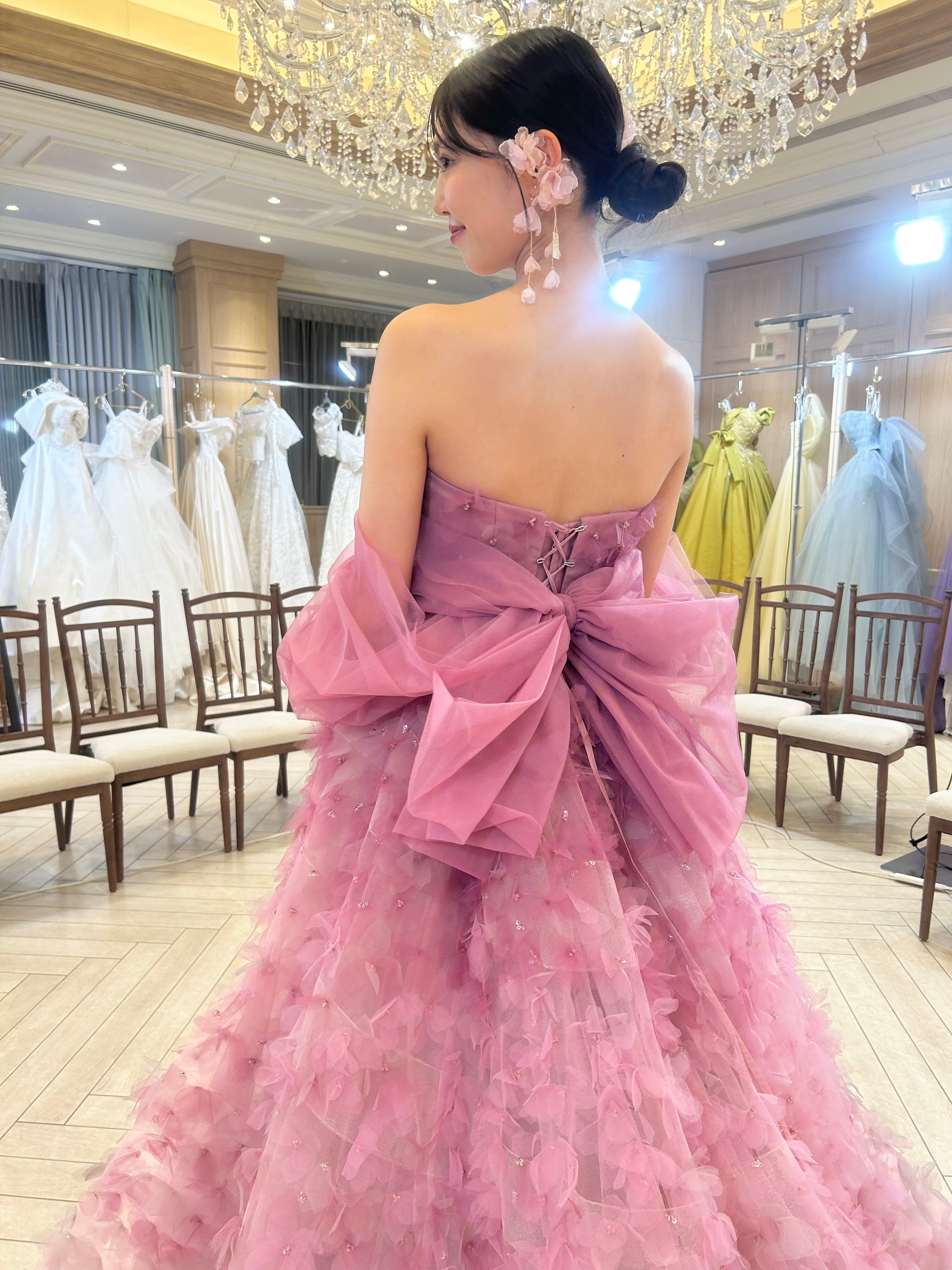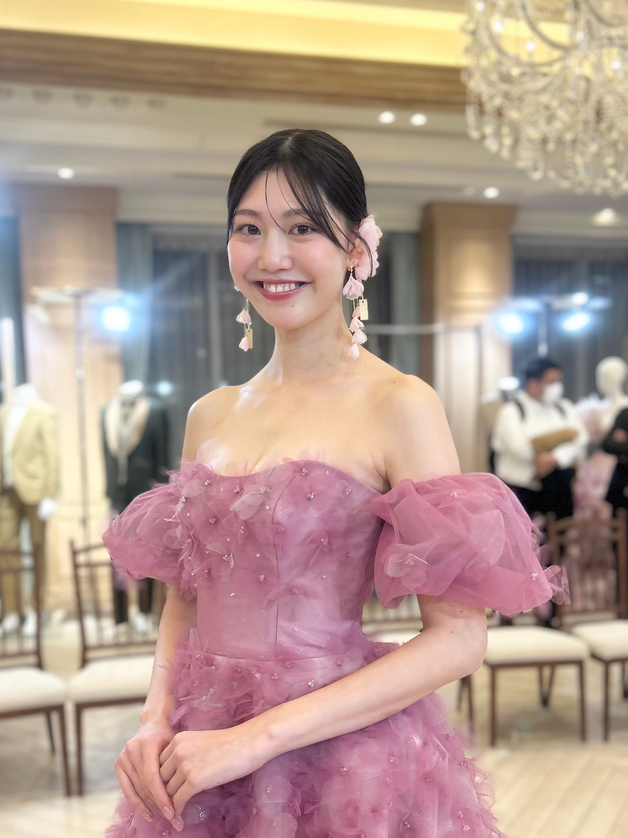 お揃いのお花モチーフを使ったヘアピン(BJ-185)とのトータルコーディネートもおすすめ。