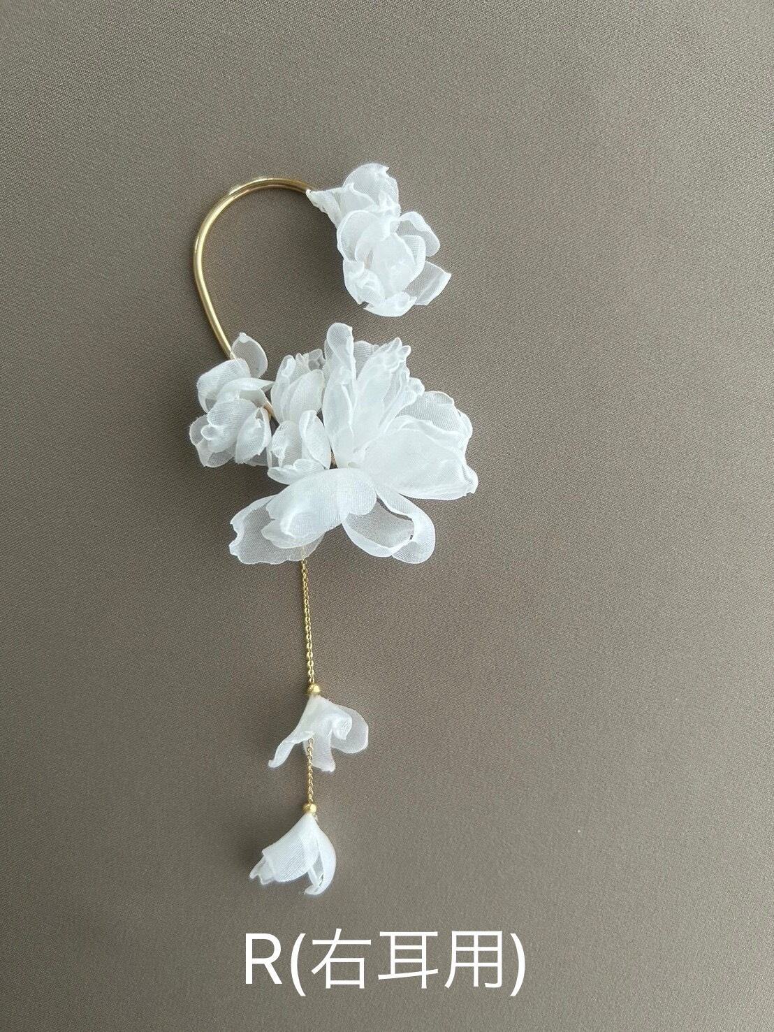 本物のお花をそのまま耳にまとうような大ぶりモチーフのイヤーカフ。