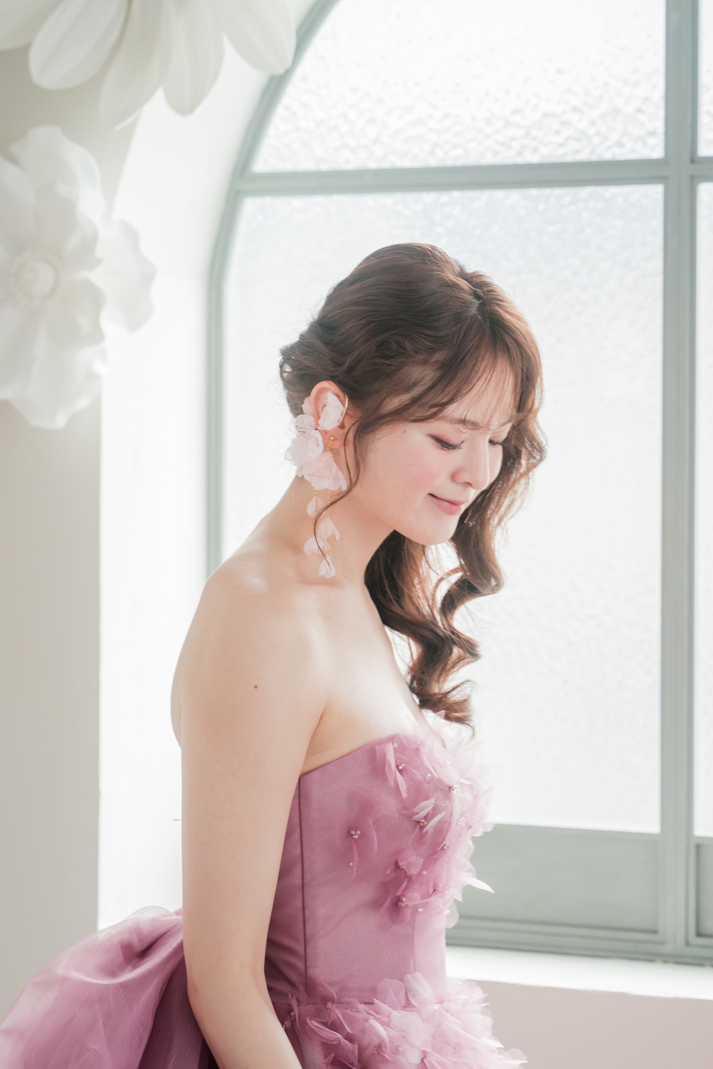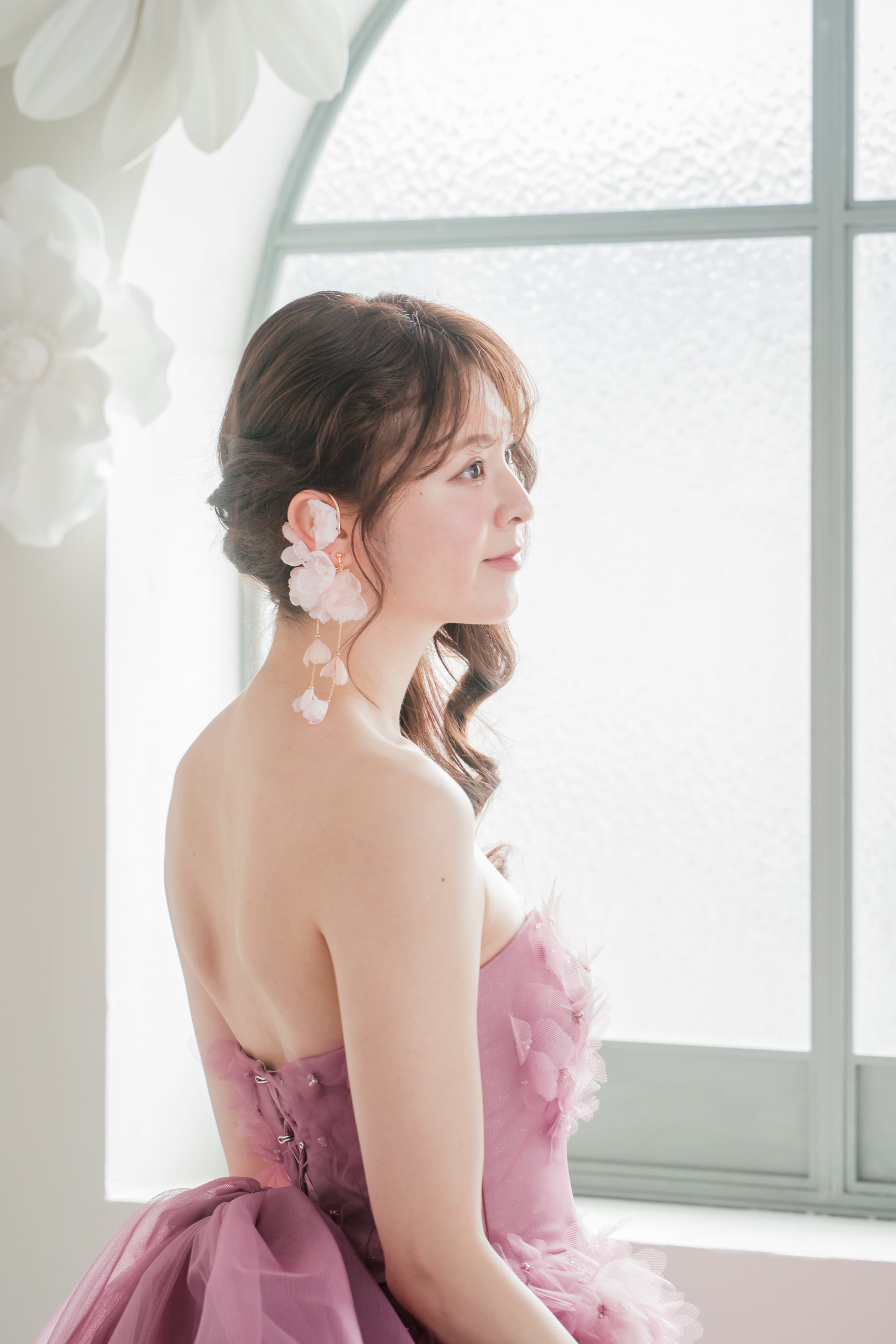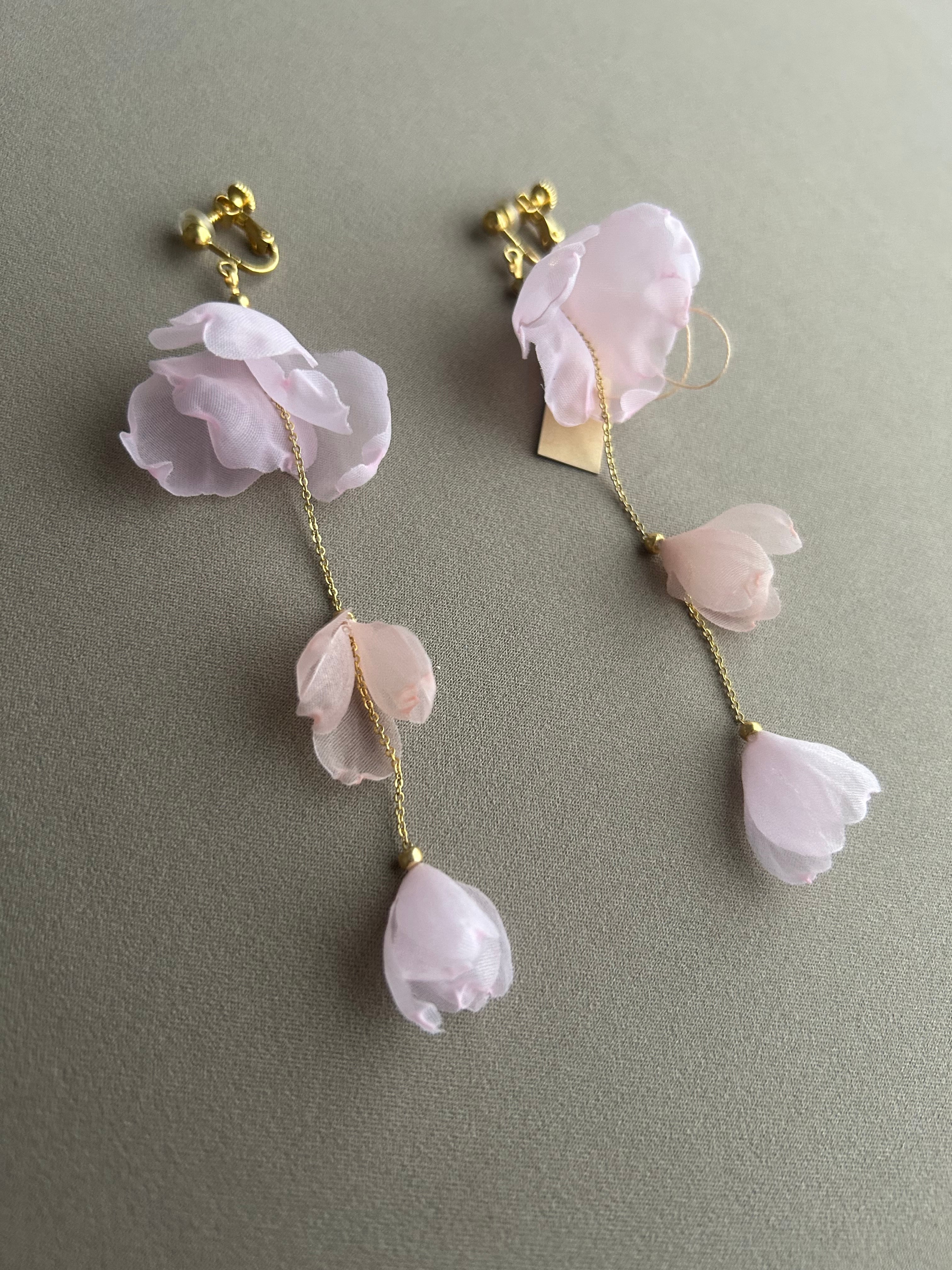 本物のお花をそのまま耳にまとうようなファブリックフラワーモチーフのイヤリング。