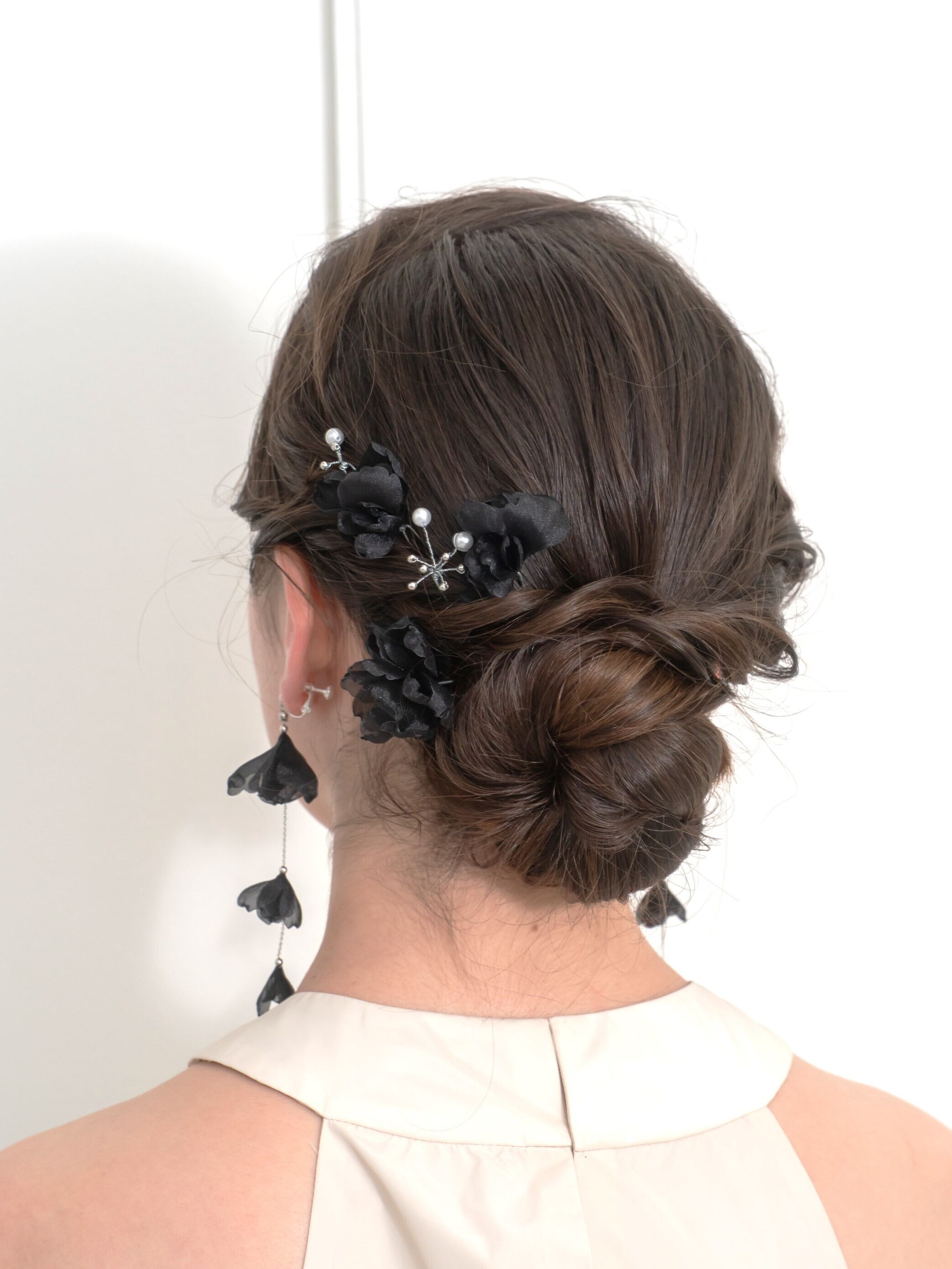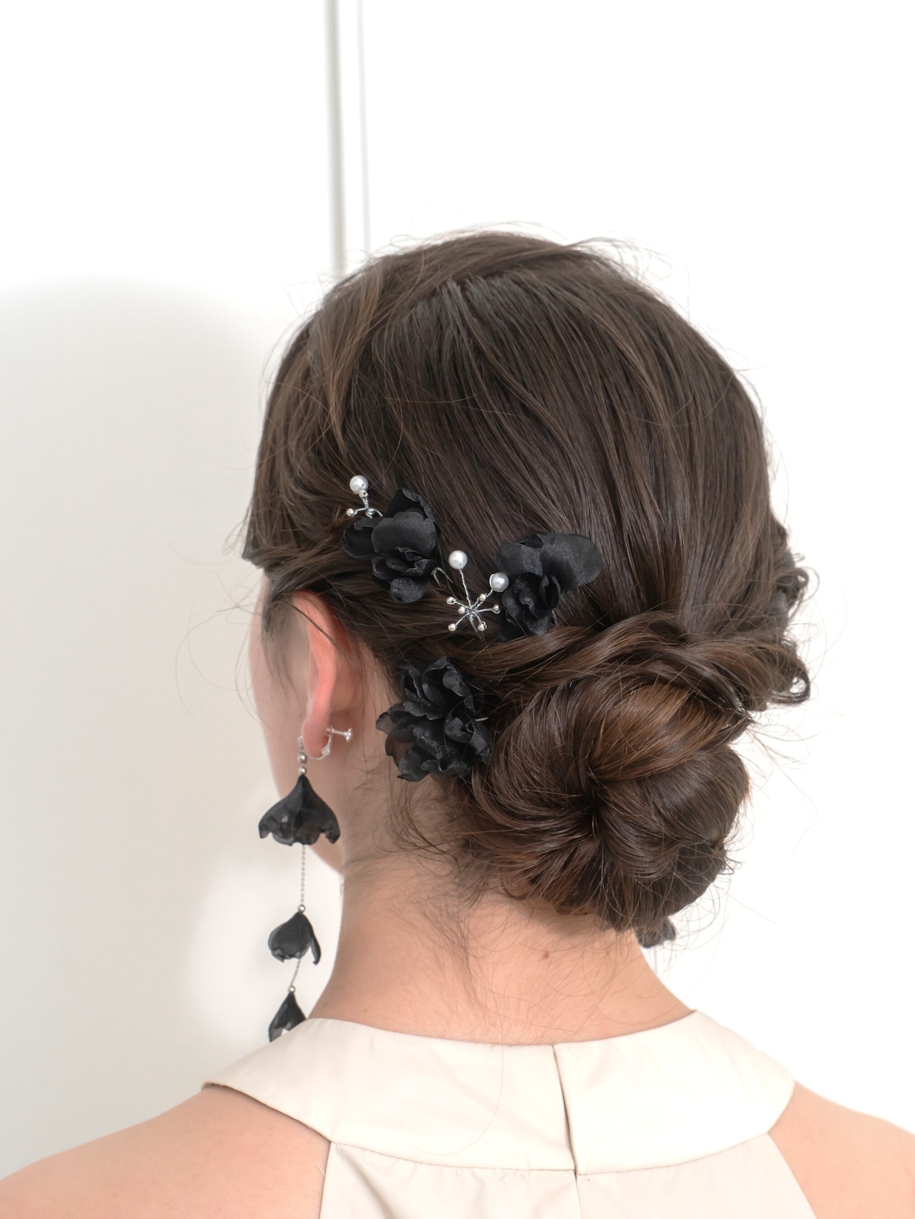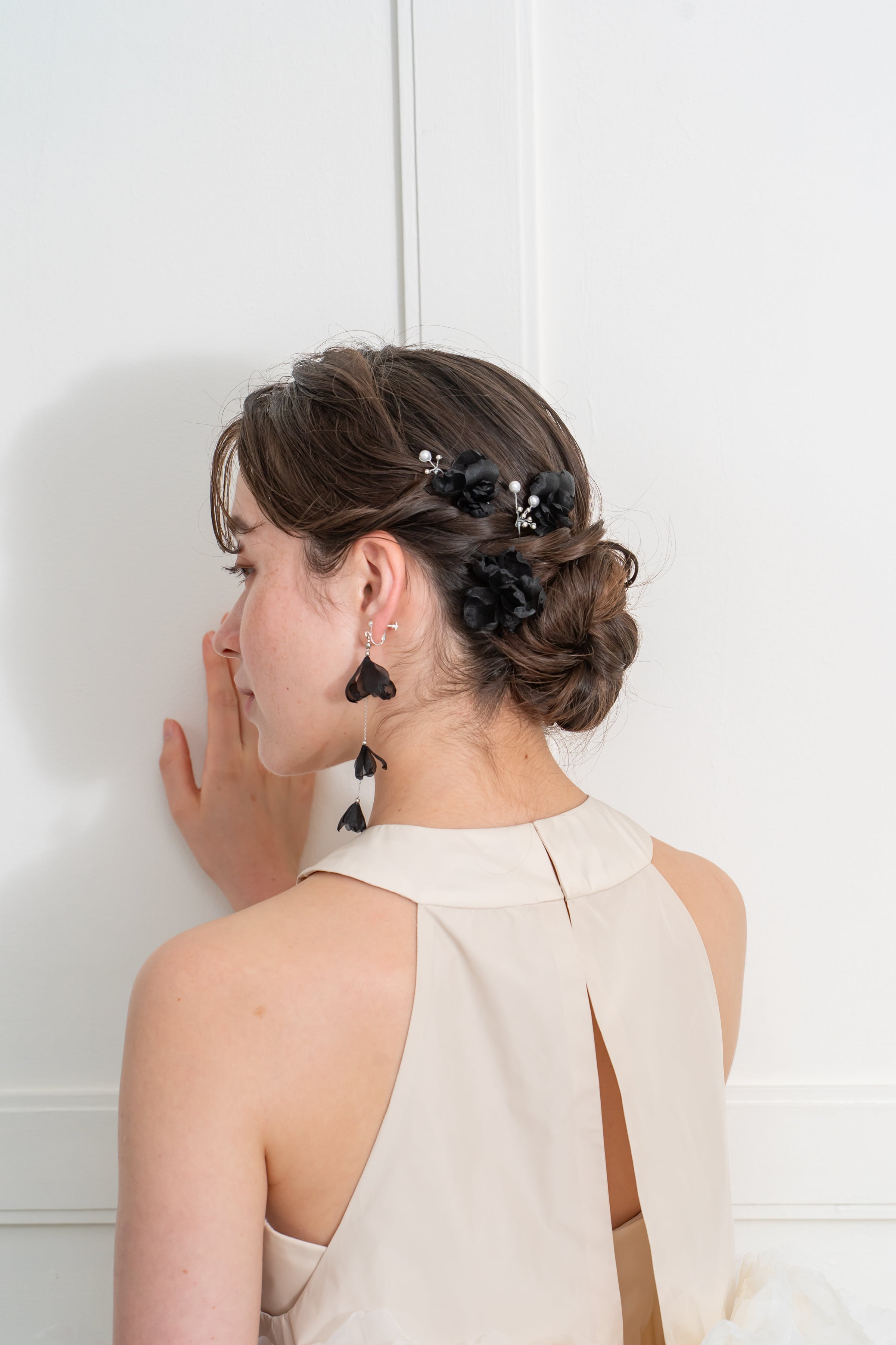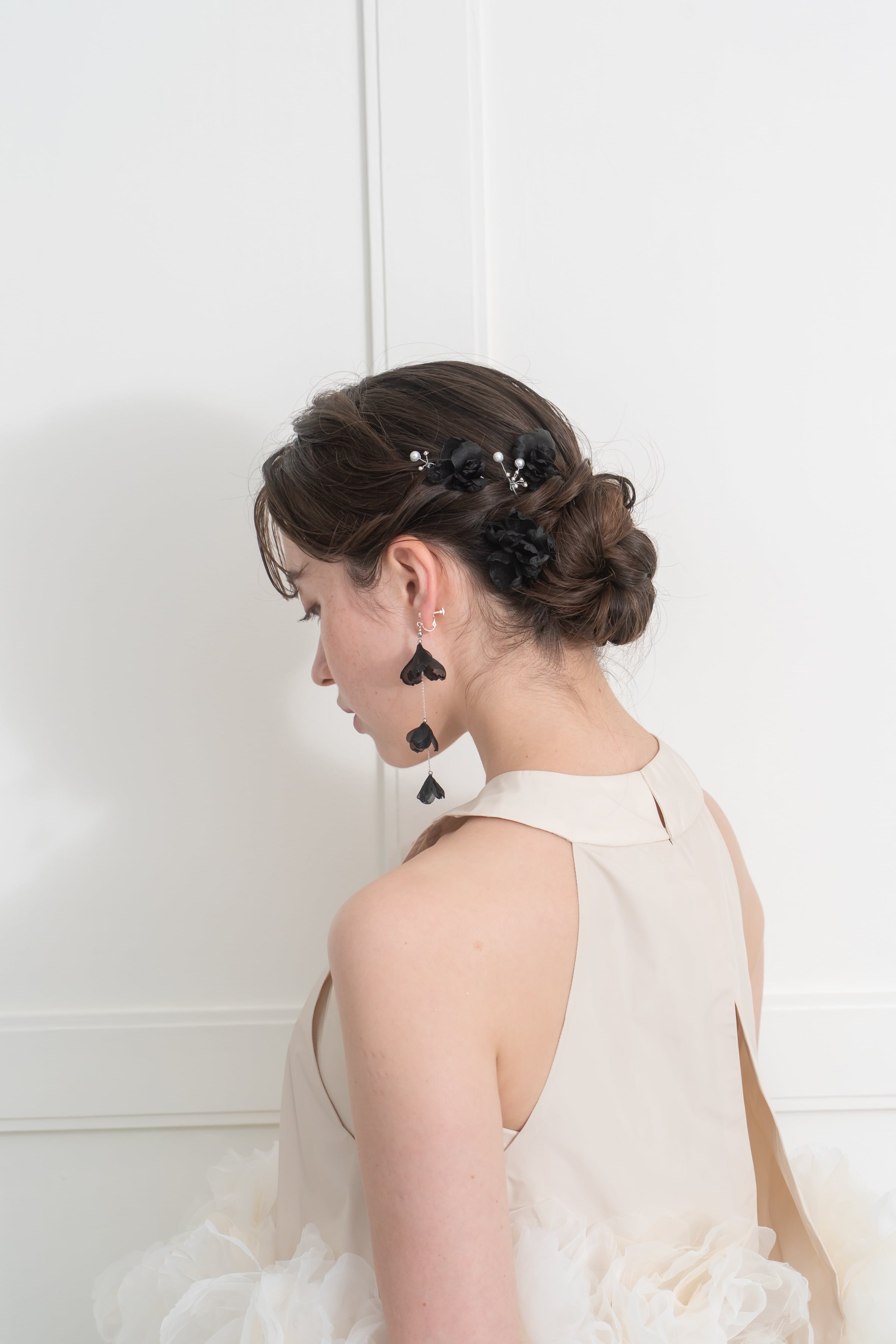 本物のお花をそのまま身に纏うようなファブリックフラワーモチーフのヘアピン。
