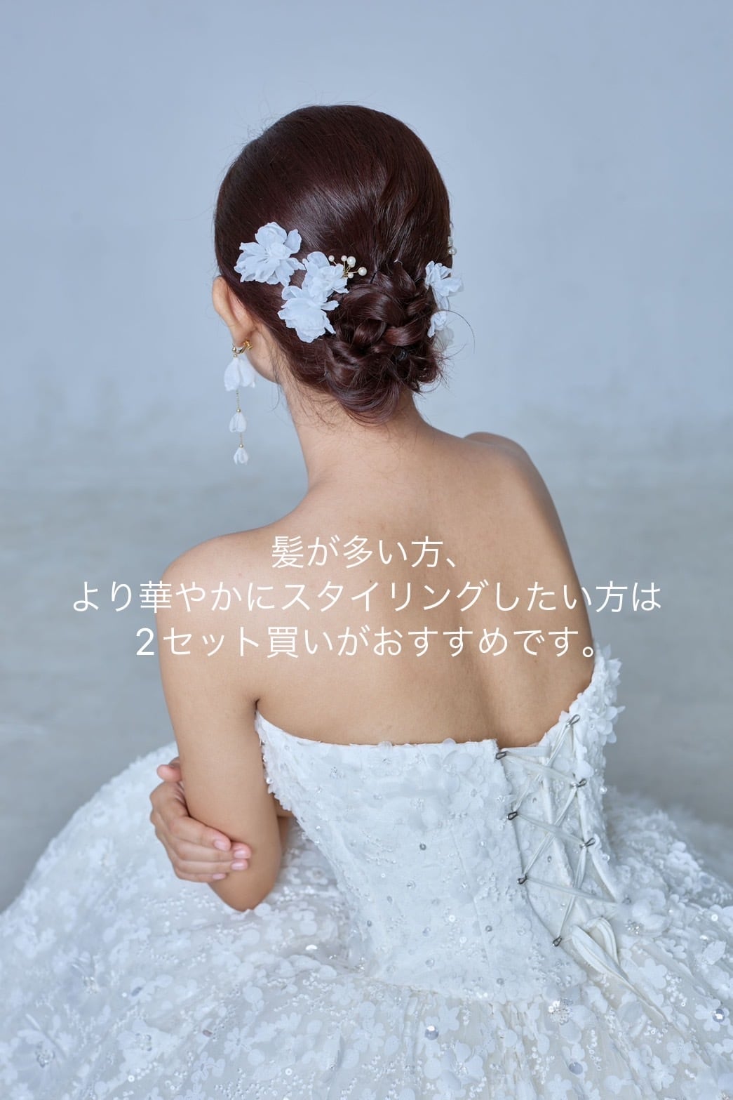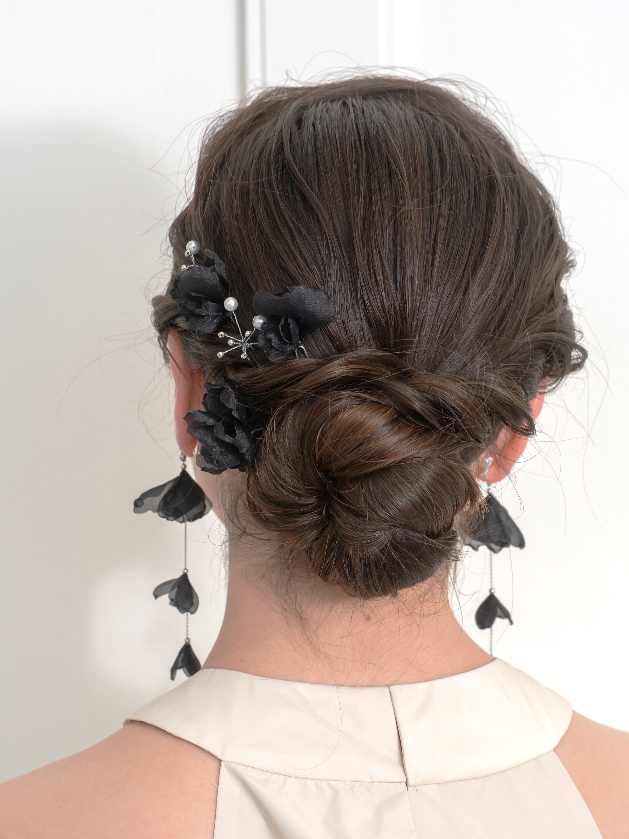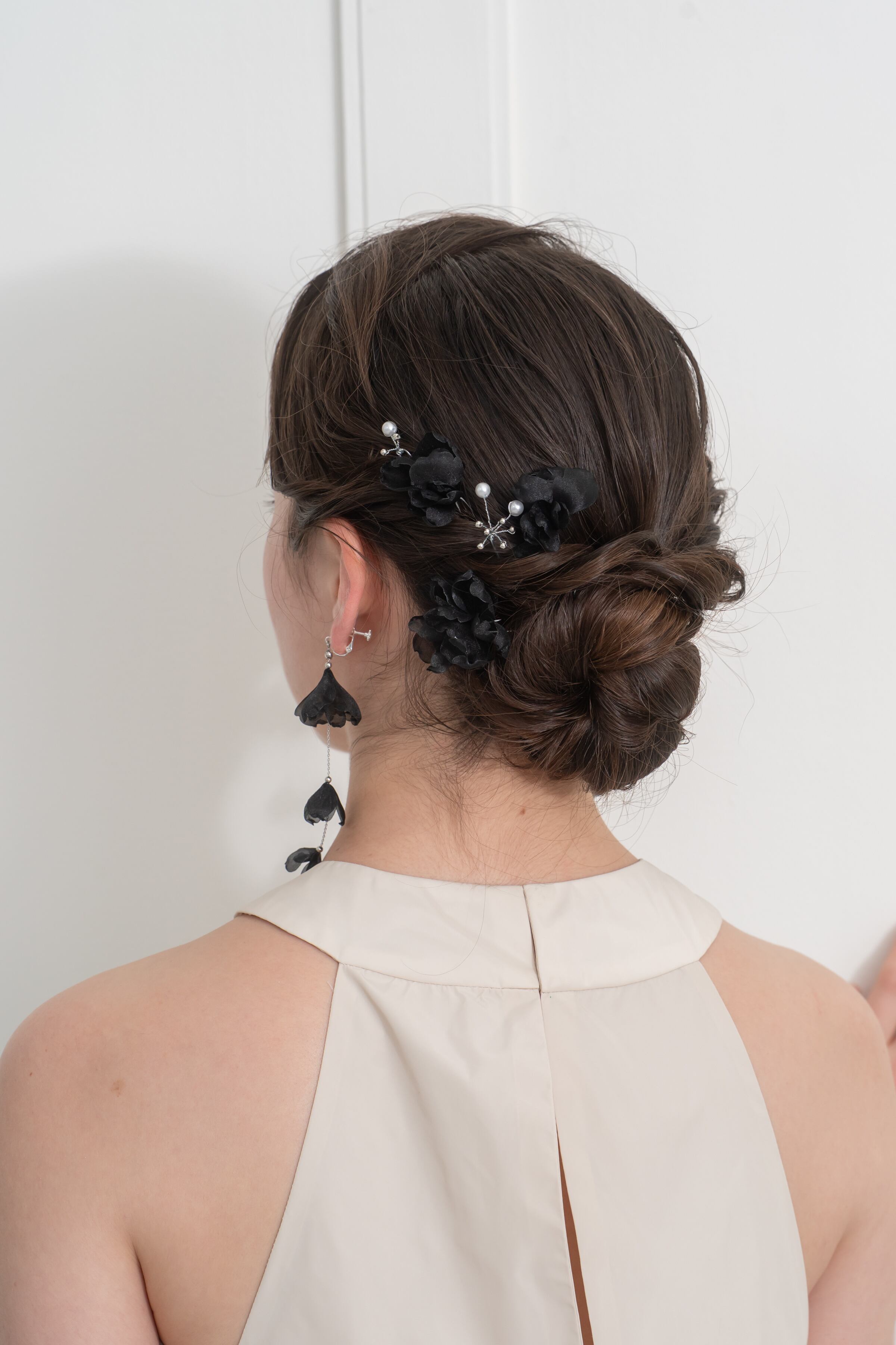 本物のお花をそのまま身に纏うようなファブリックフラワーモチーフのヘアピン。