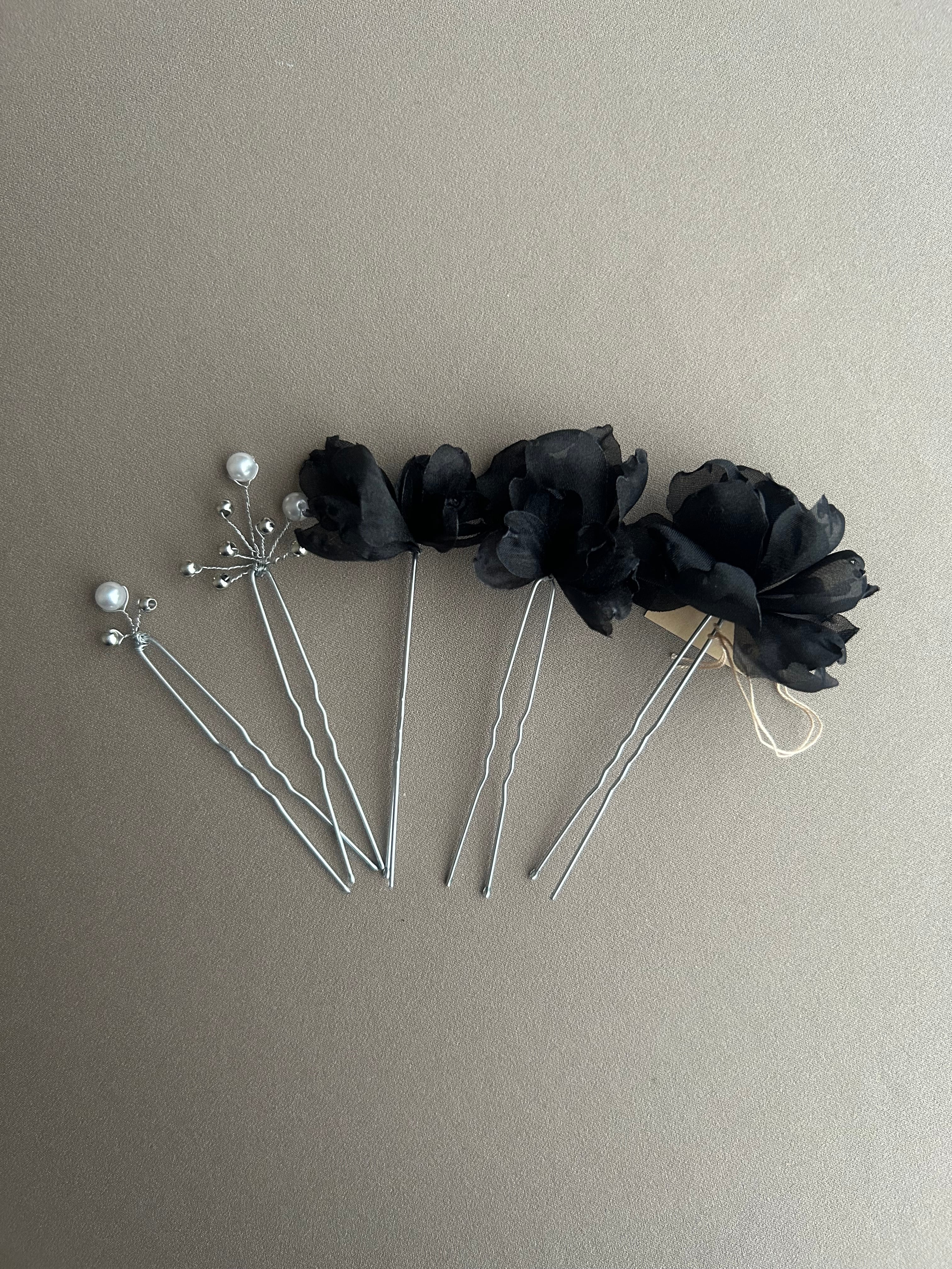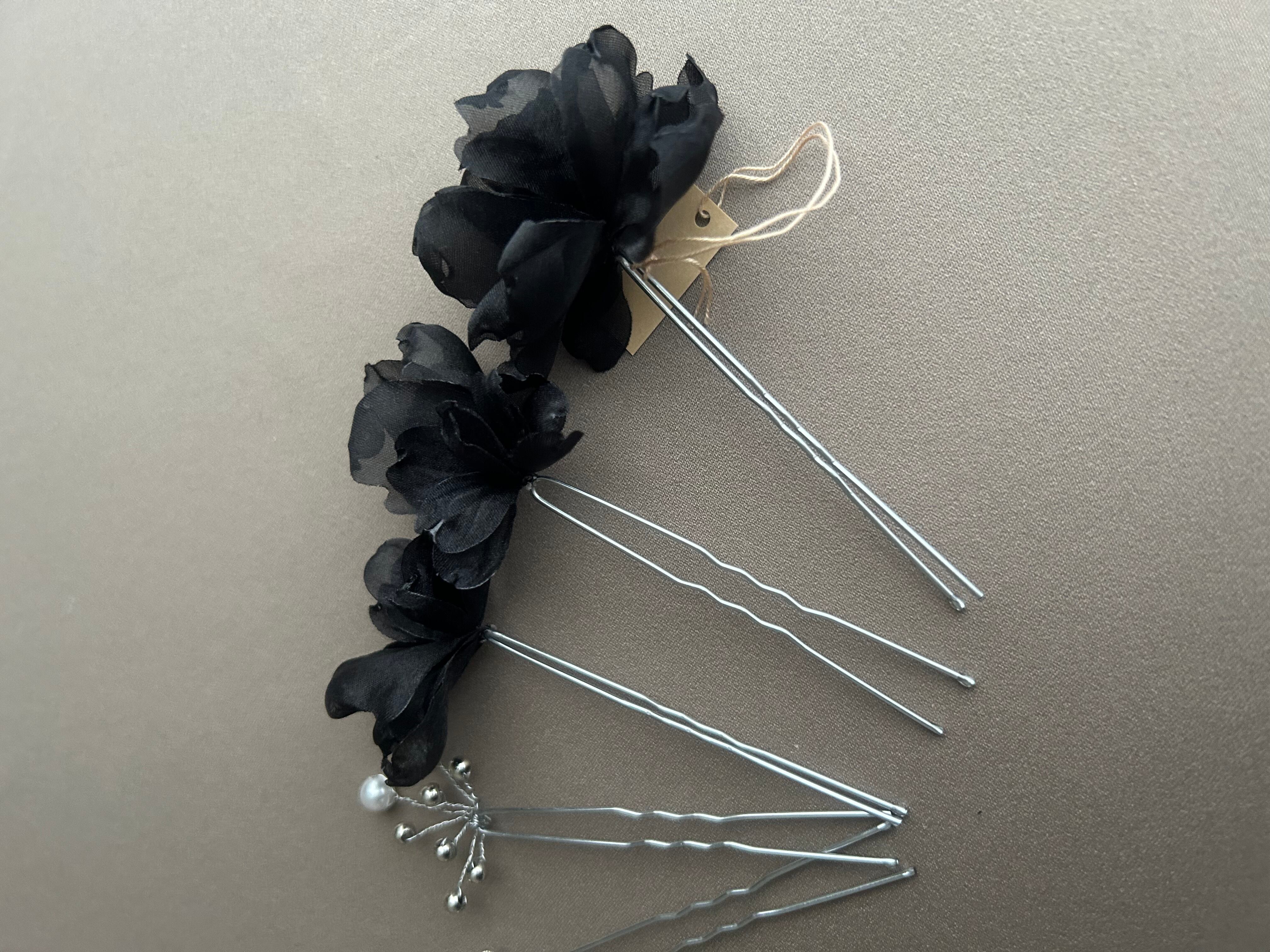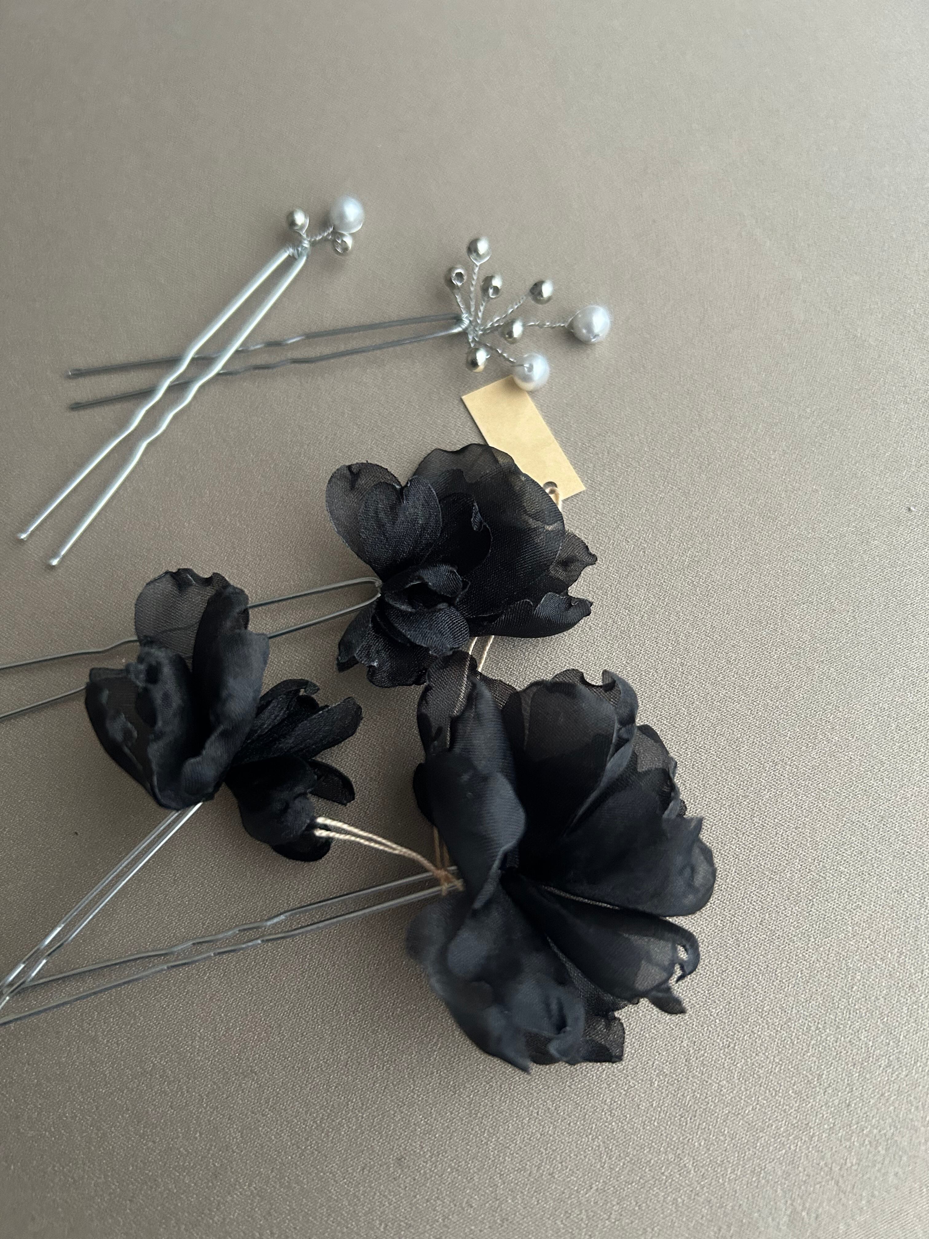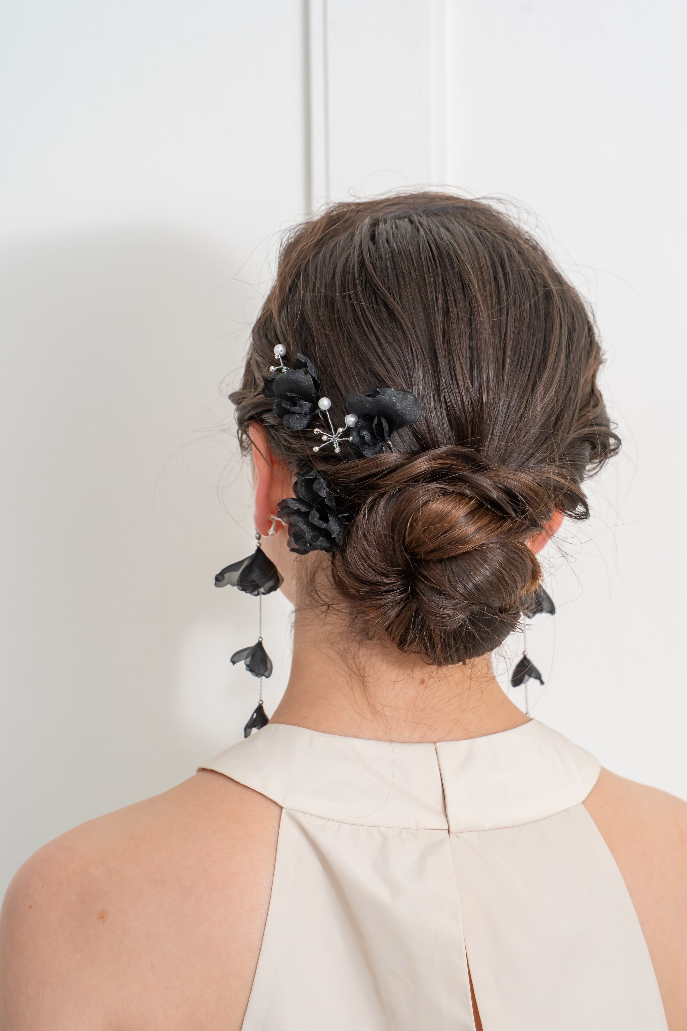 本物のお花をそのまま身に纏うようなファブリックフラワーモチーフのヘアピン。