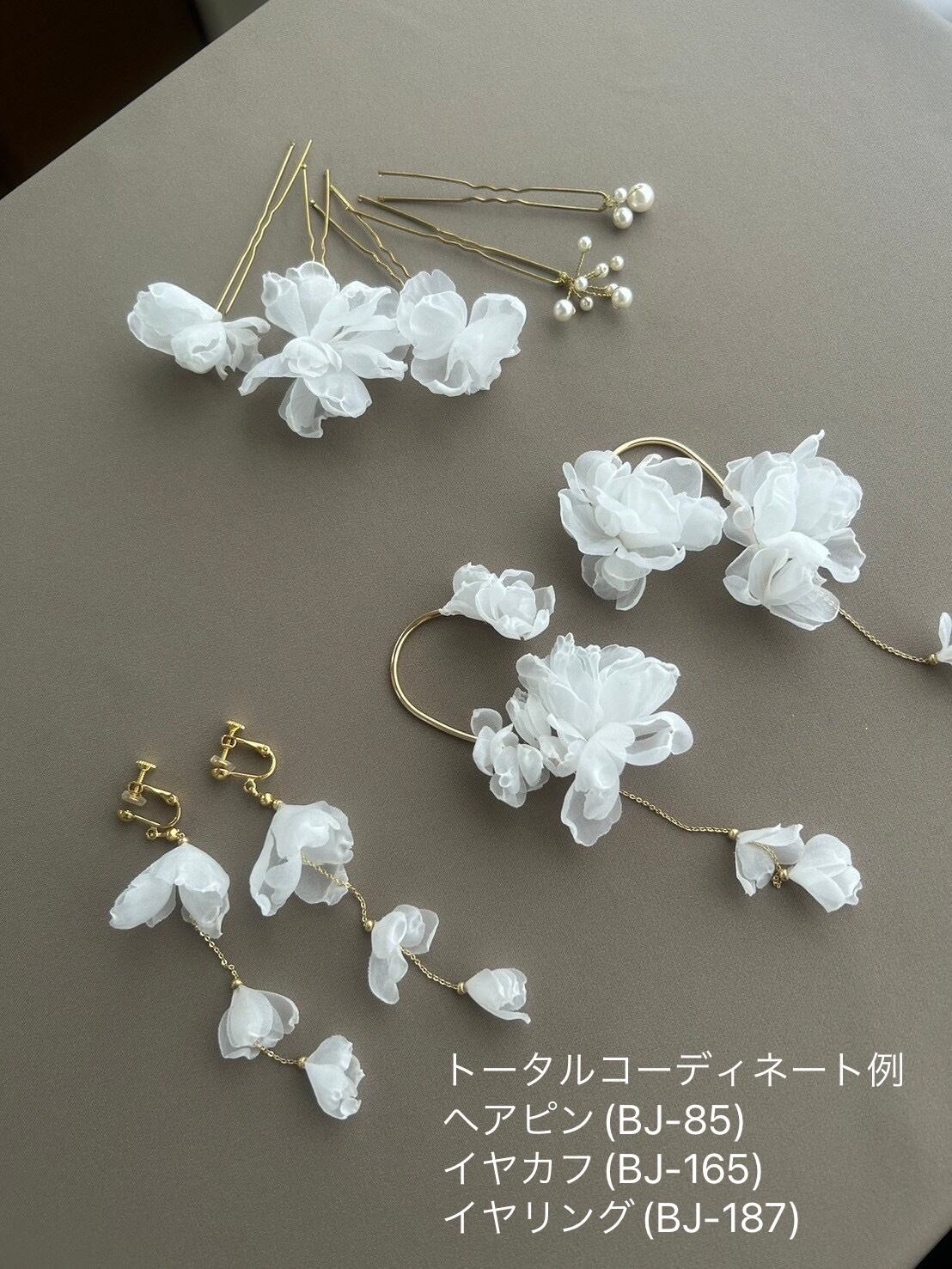 お揃いの花モチーフを使ったイヤーカフ(BJ-165)や
