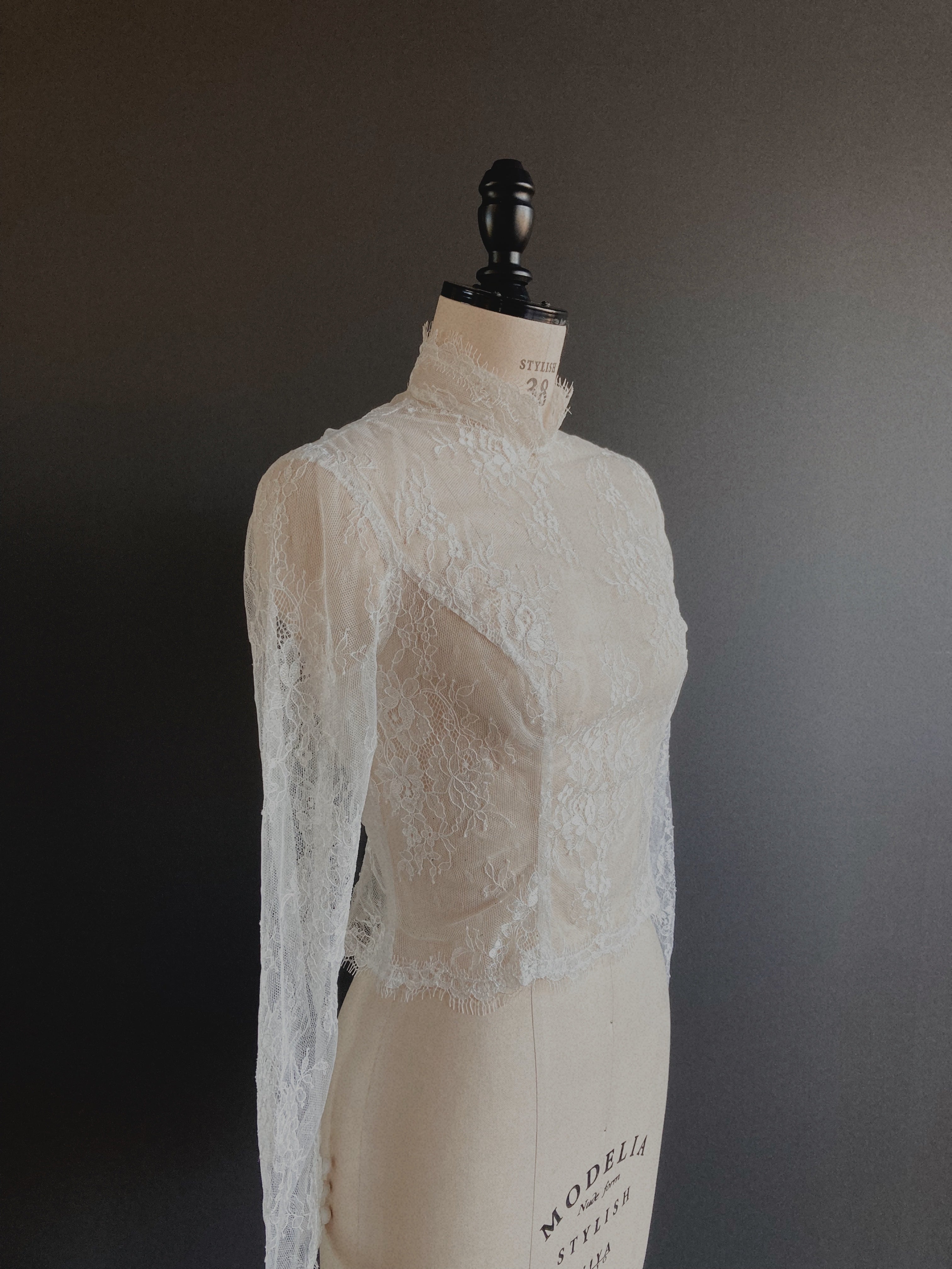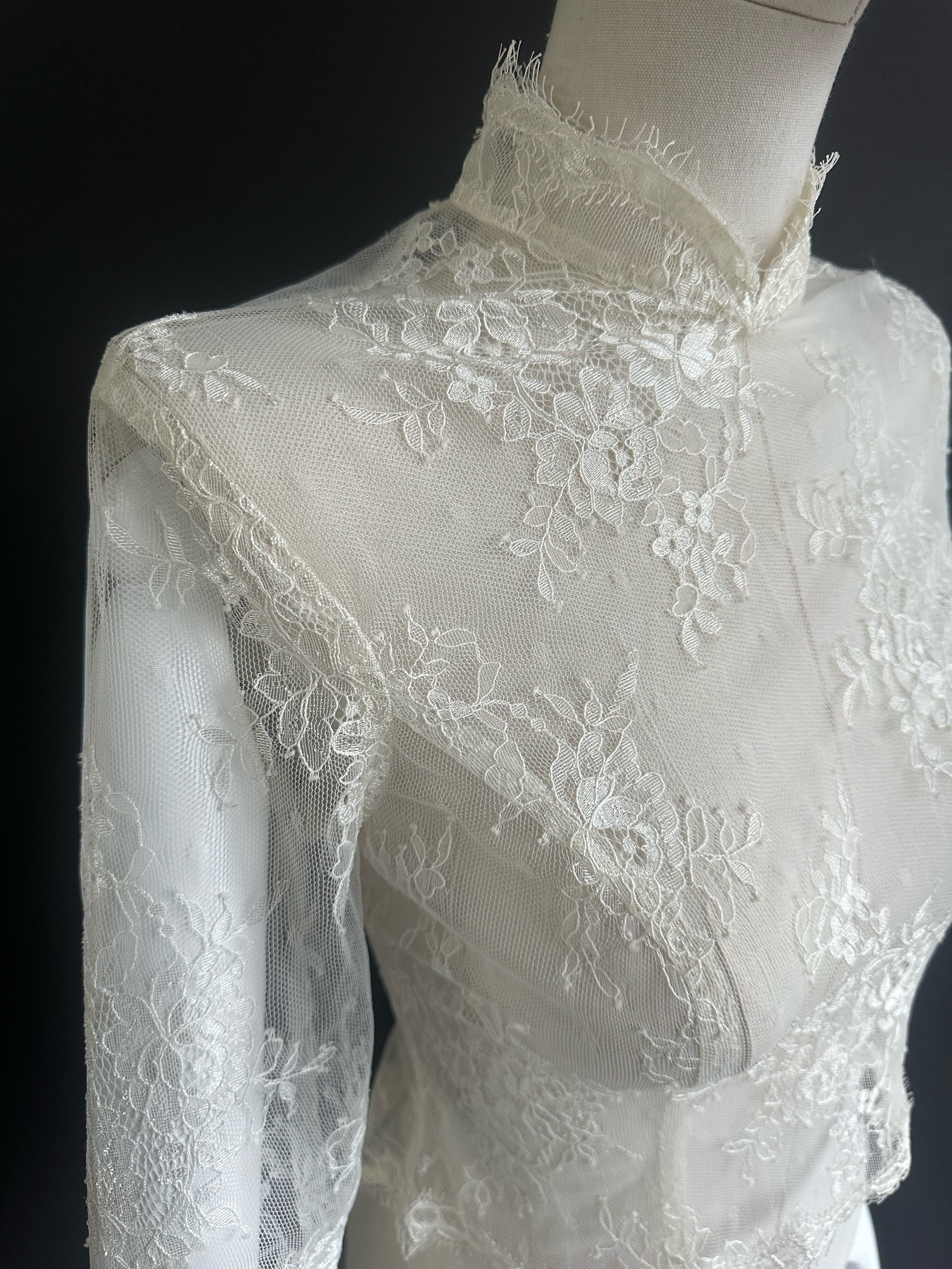 薄手のレースを使っているため、インナーブラウスとしてドレス内側に着用したり