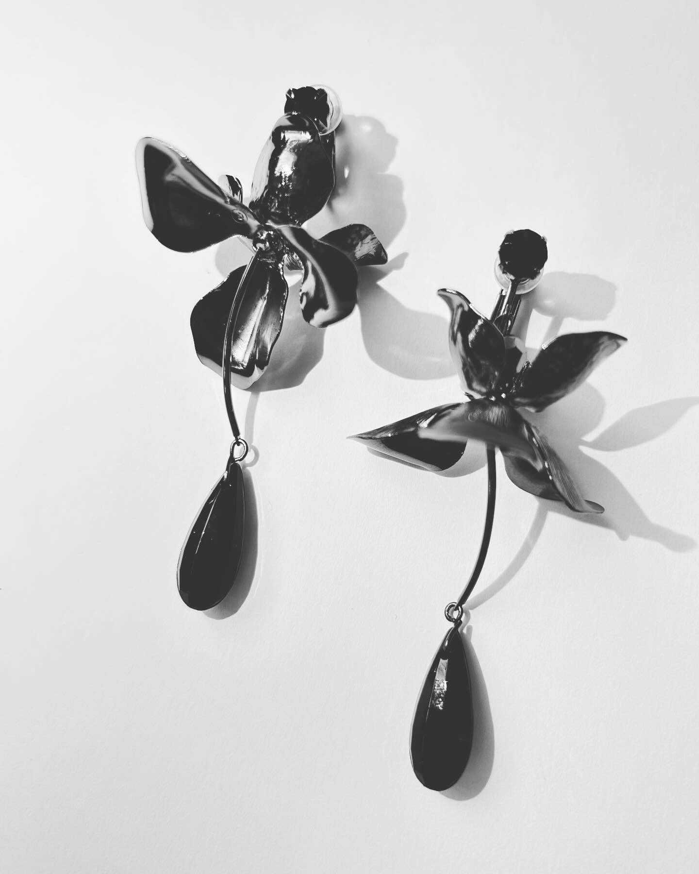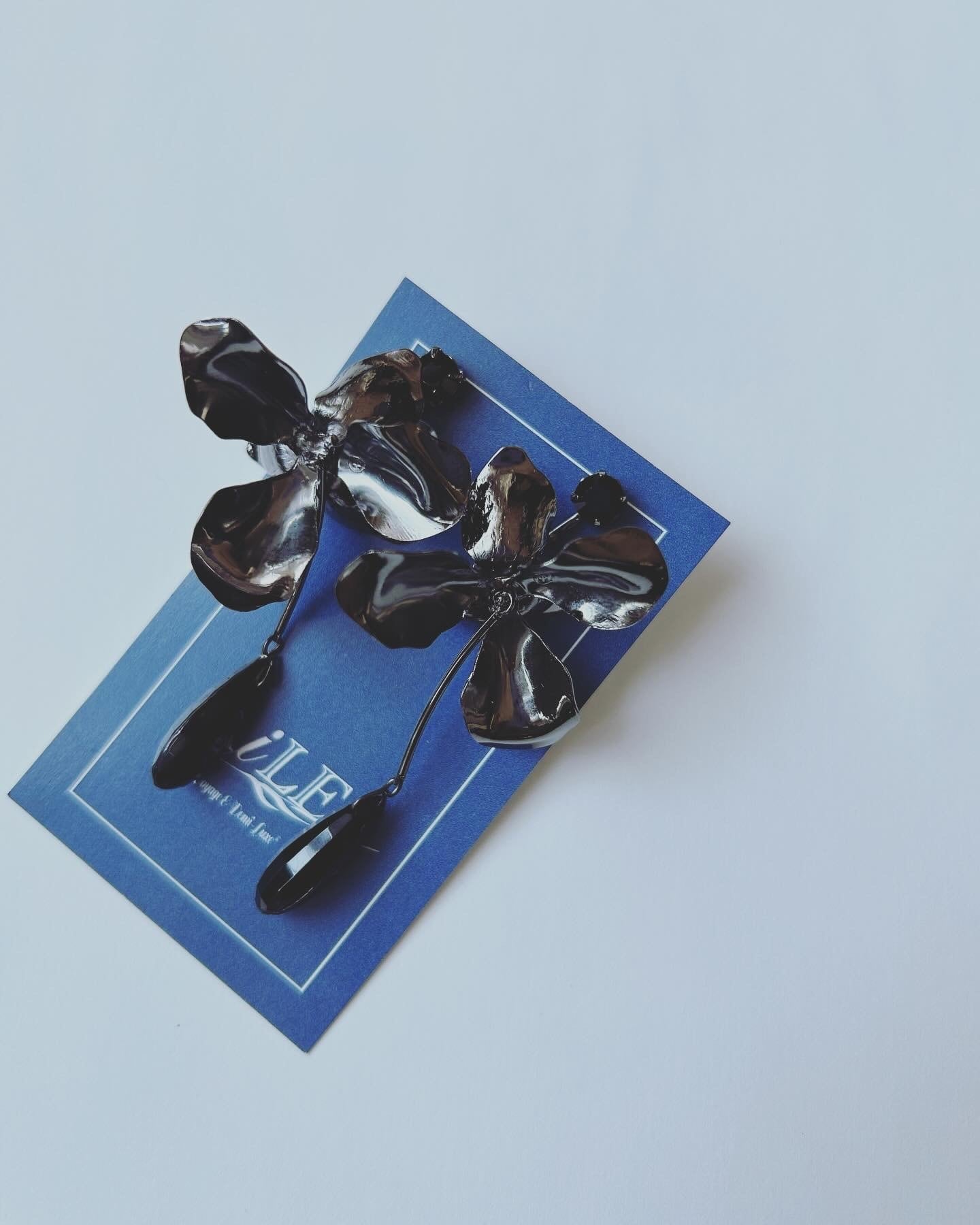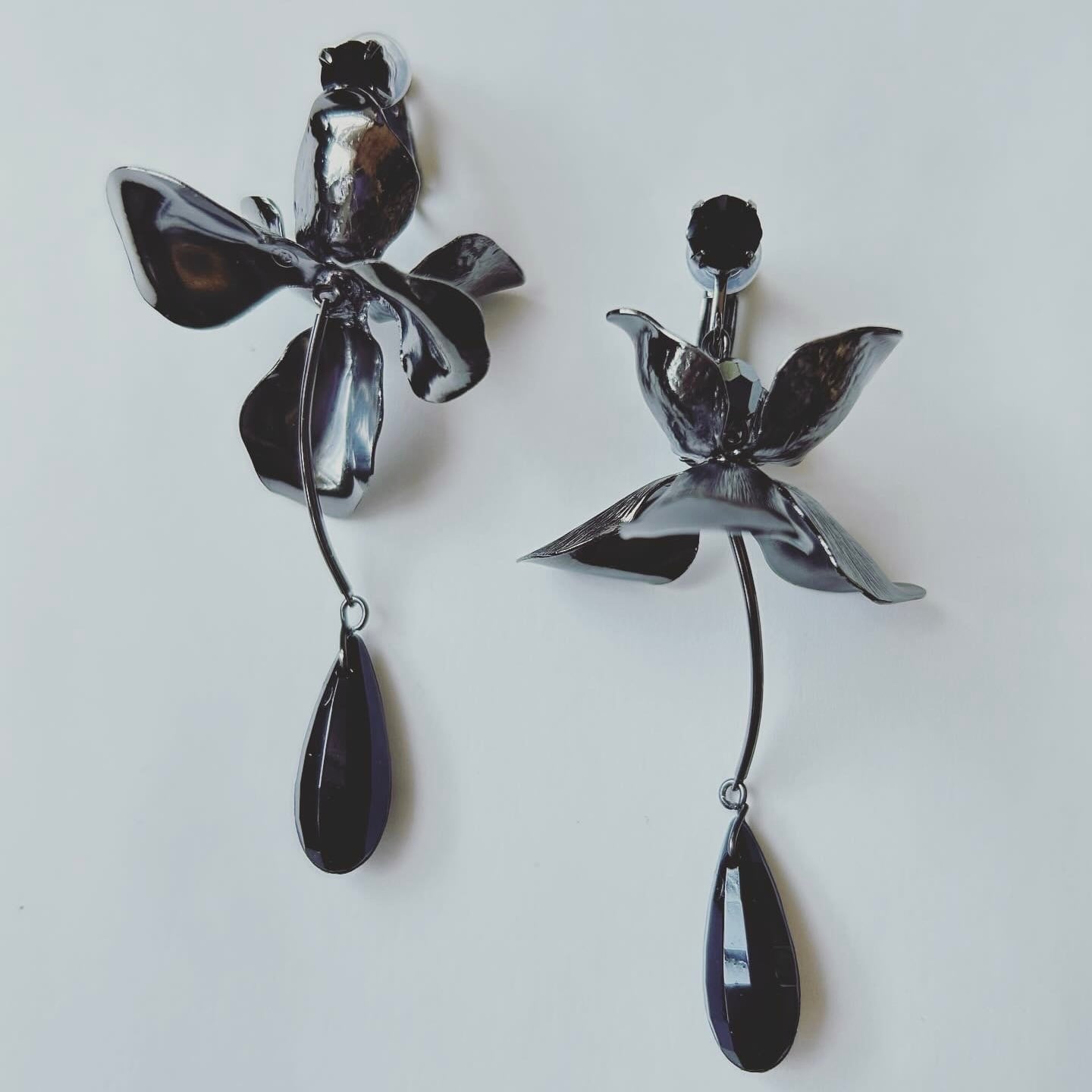 【受注生産】AB-28 Statement black flower petal earrings ブラックメタルフラワーイヤリング