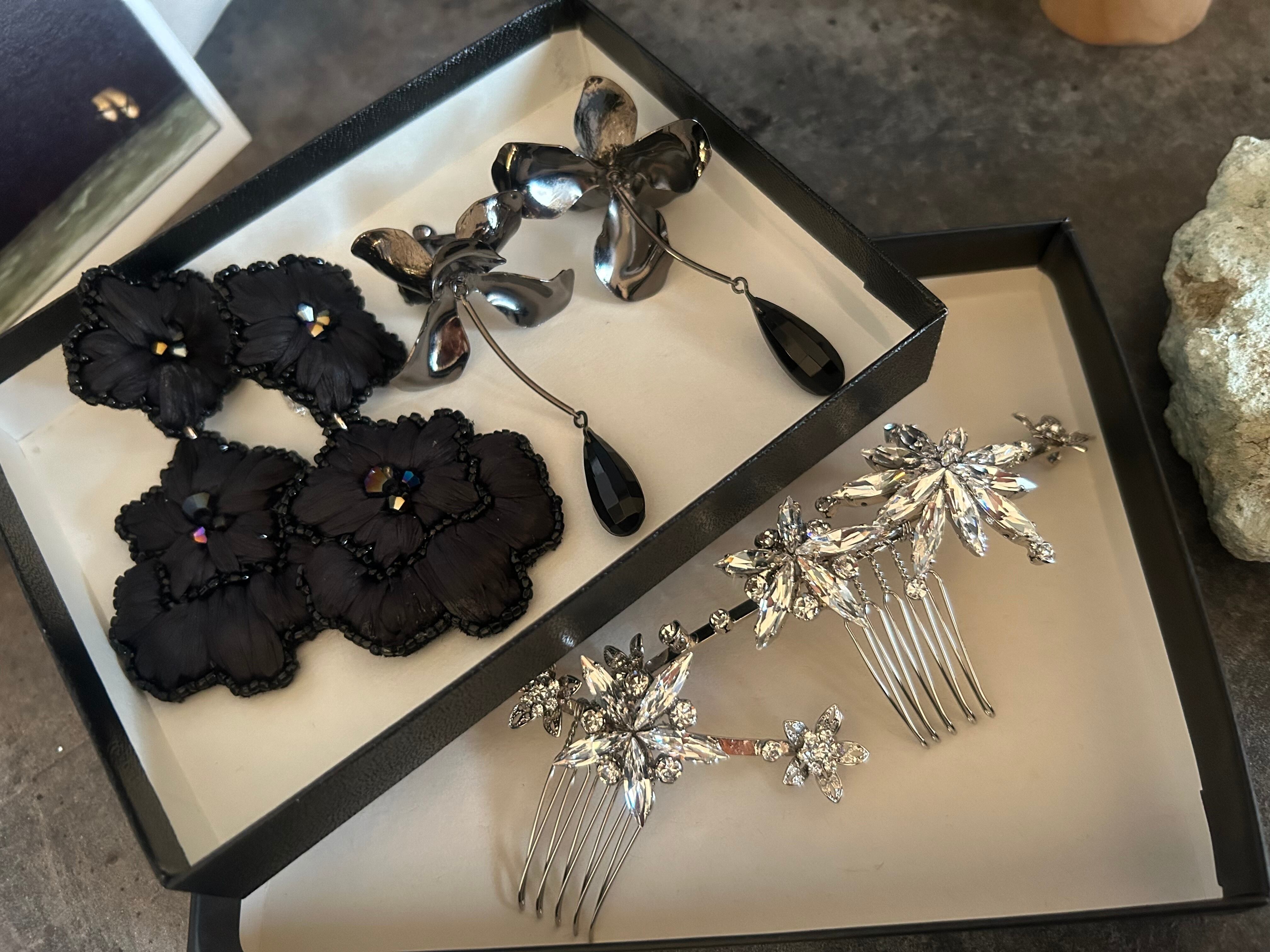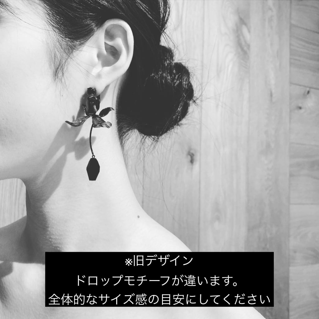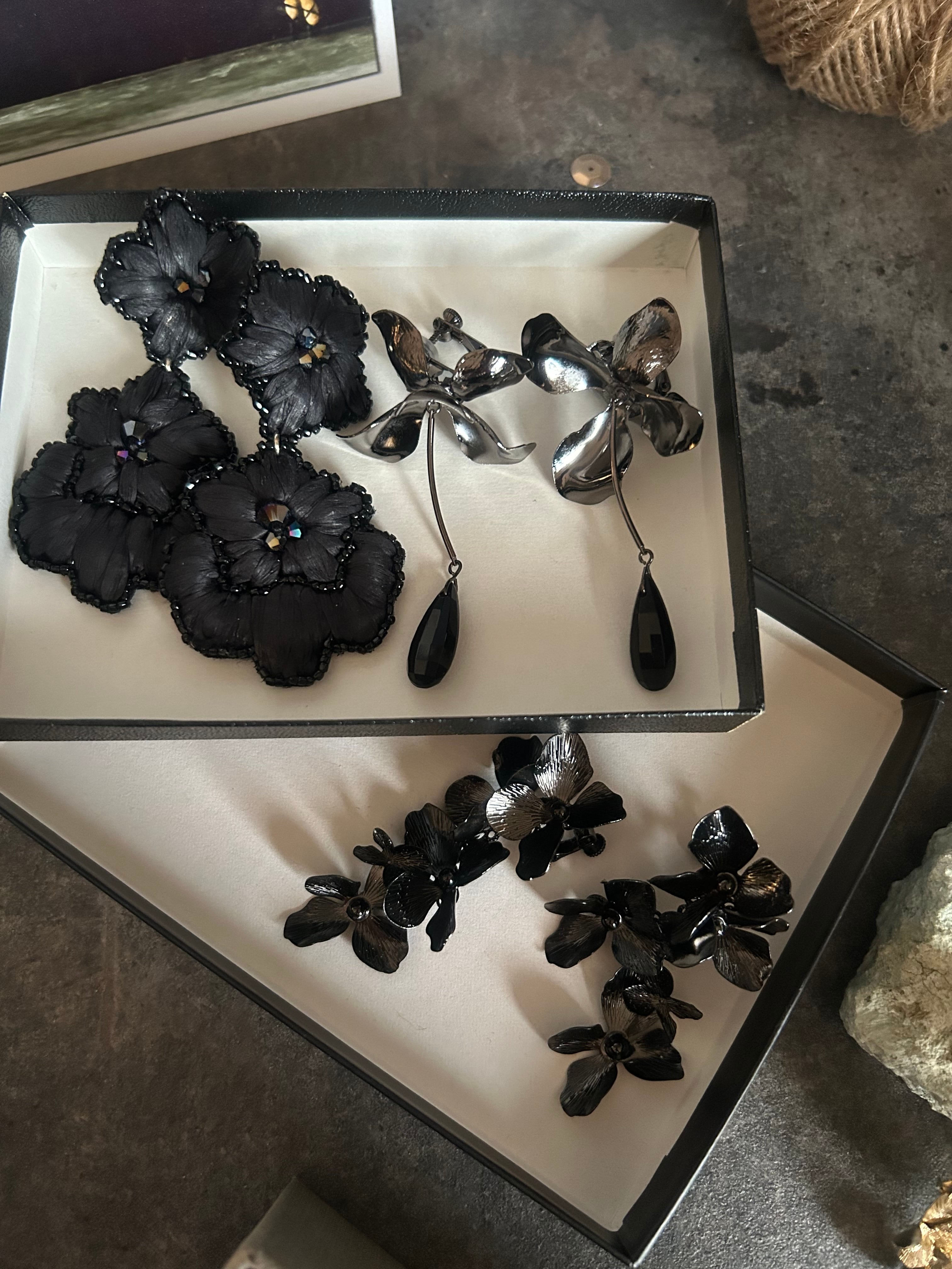 珍しいブラックカラーのペタルフラワーイヤリング。