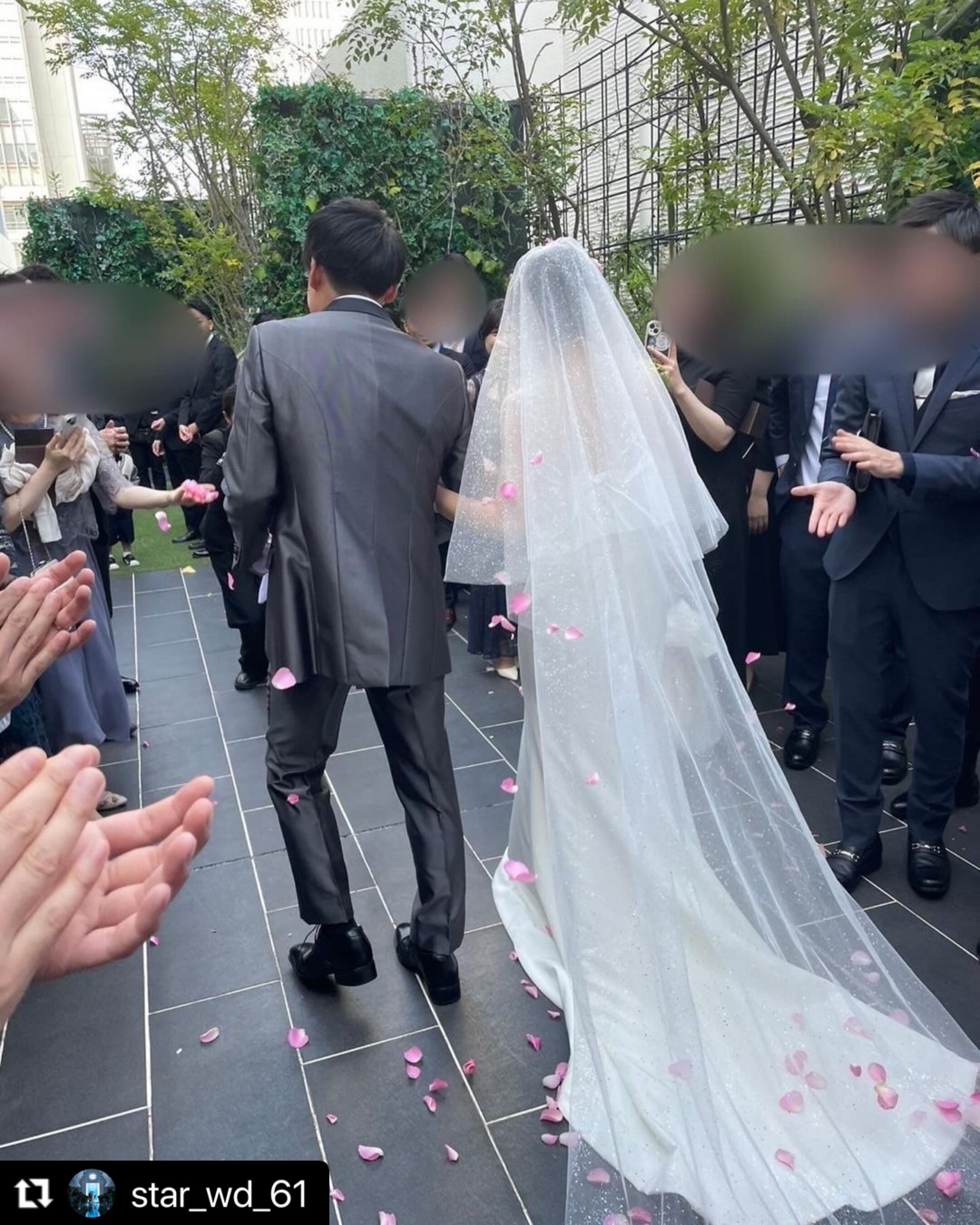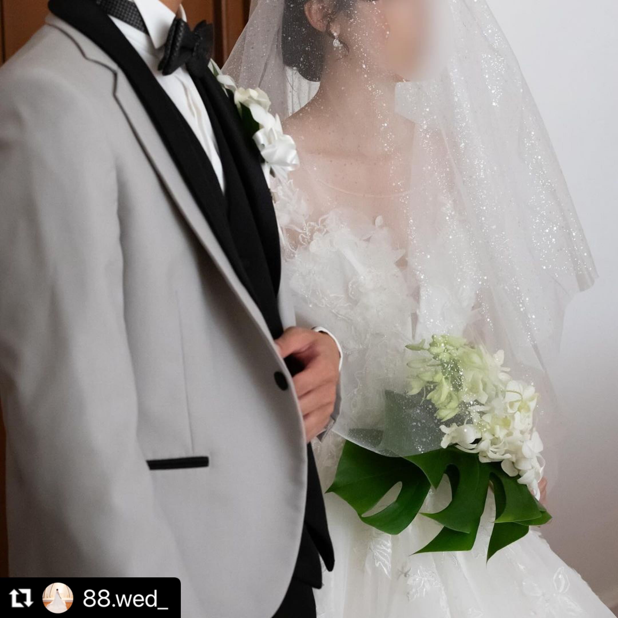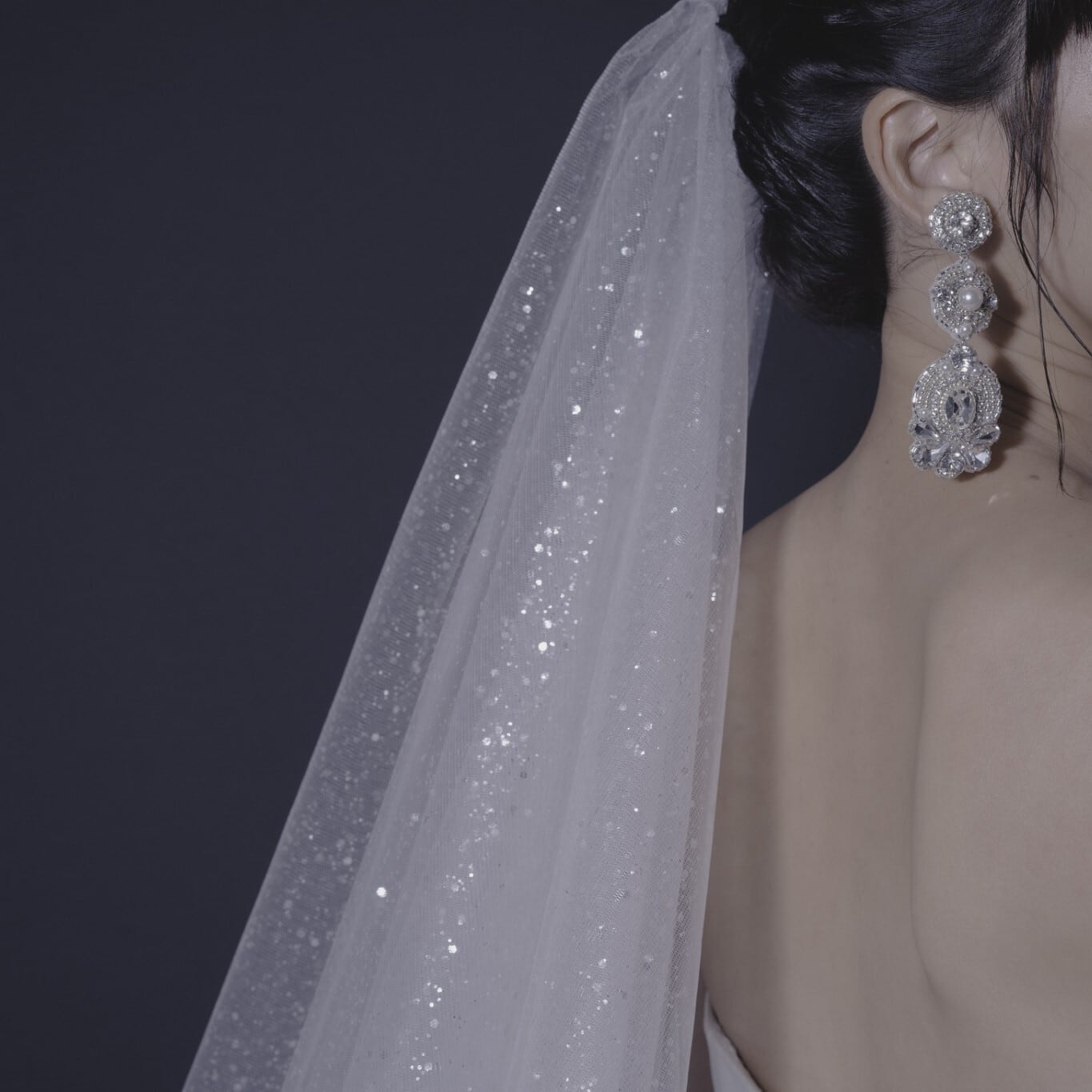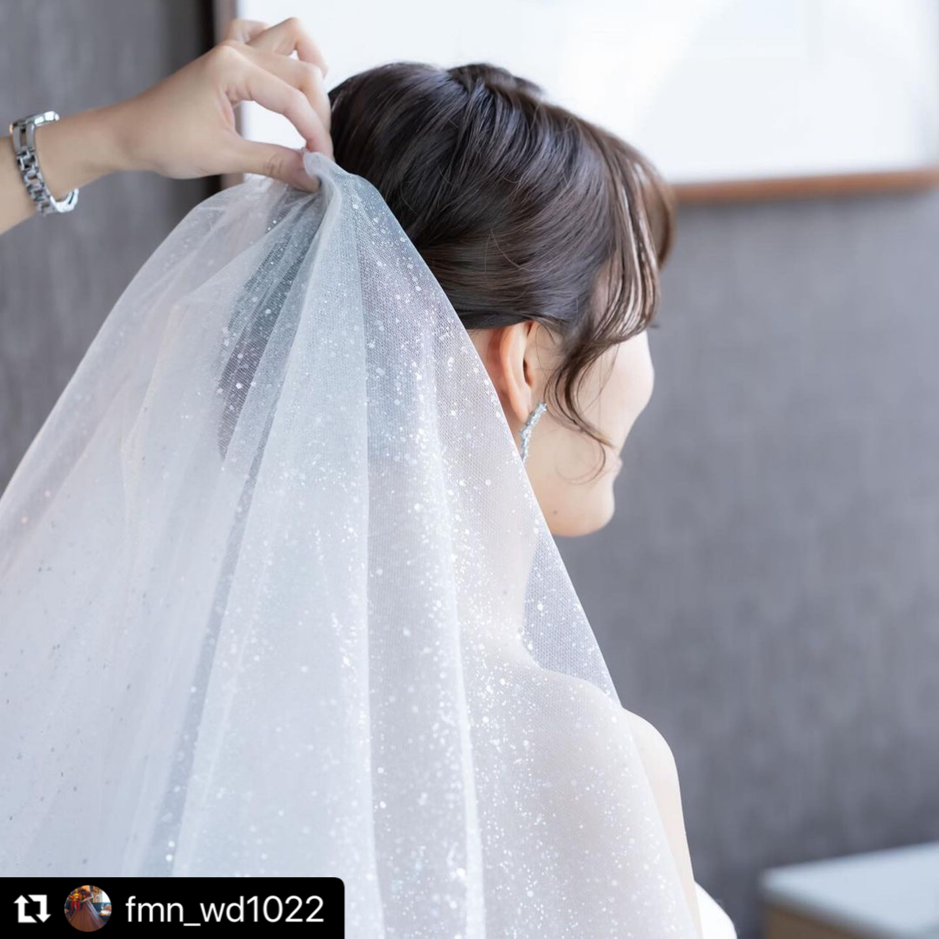 満天の星空のようにグリッターが煌めくウェディングベール。