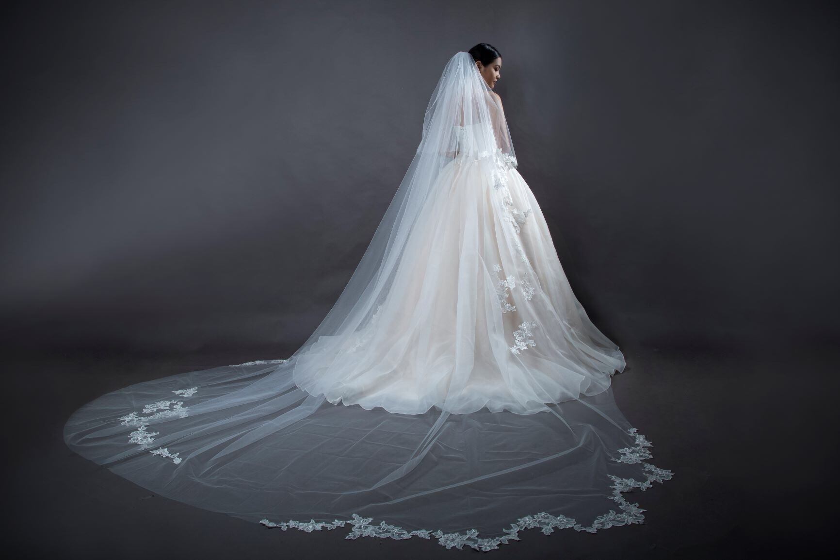 通常の2倍(約300cm)の生地幅を持つ特別なチュールを使用した、ワイドベールシリーズです。