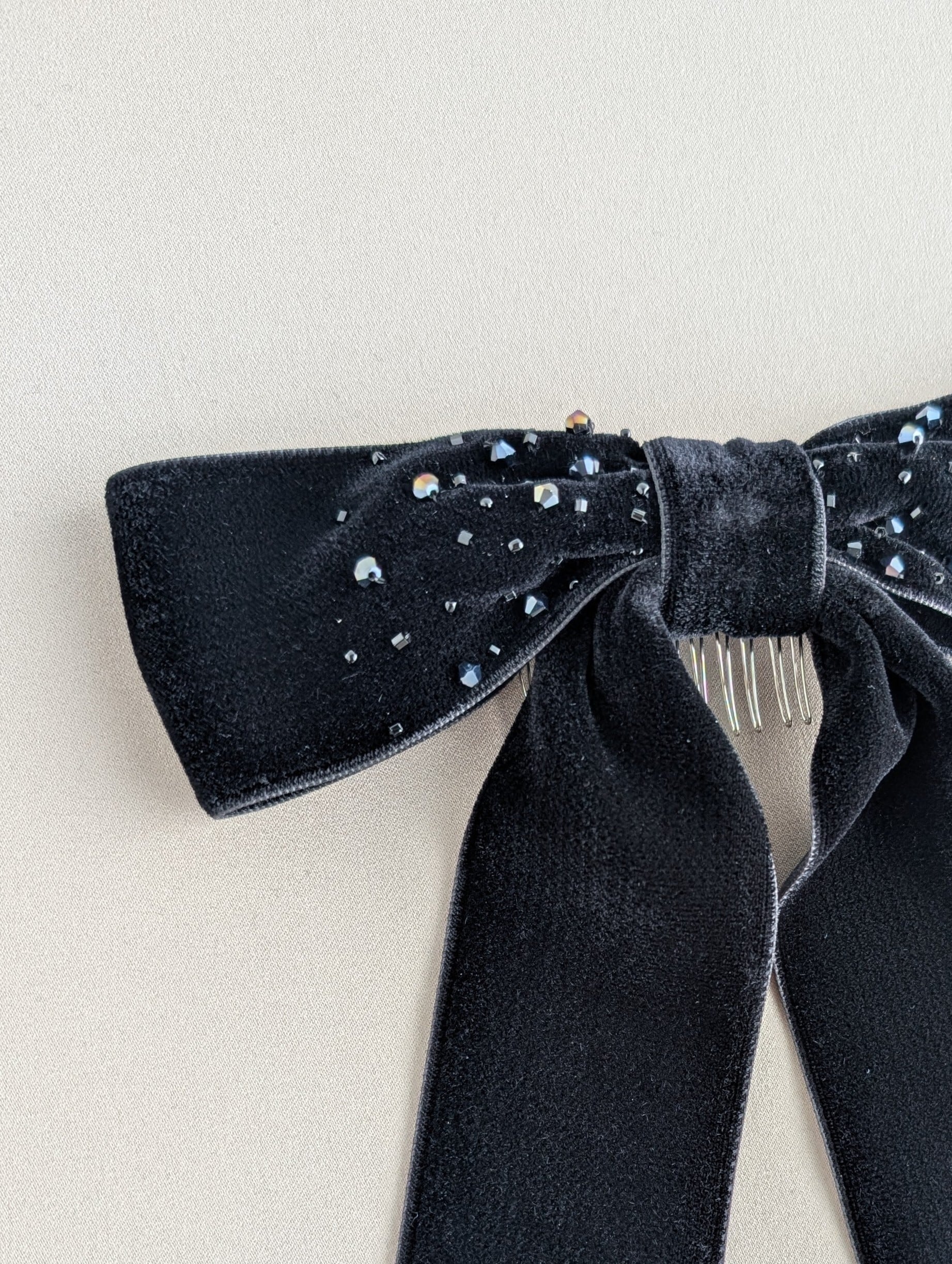 【生見愛瑠さん着用】キラキラ刺繍入りビッグリボン ブラックベルベット48mmサイズ BJ-236 BK