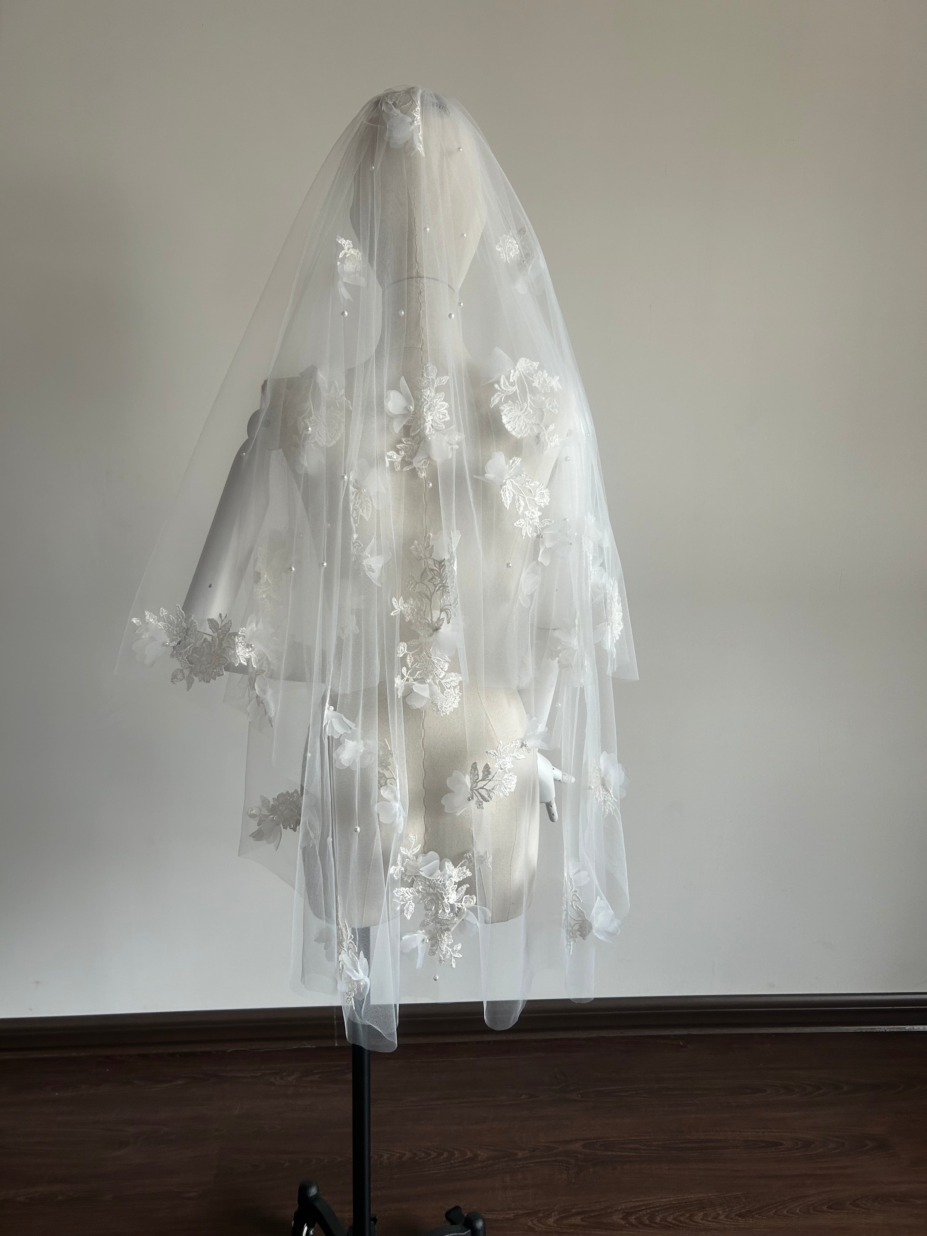 【生見愛瑠さん着用】パール+3Dフラワーベール YM-35-OW-M 70+110cm