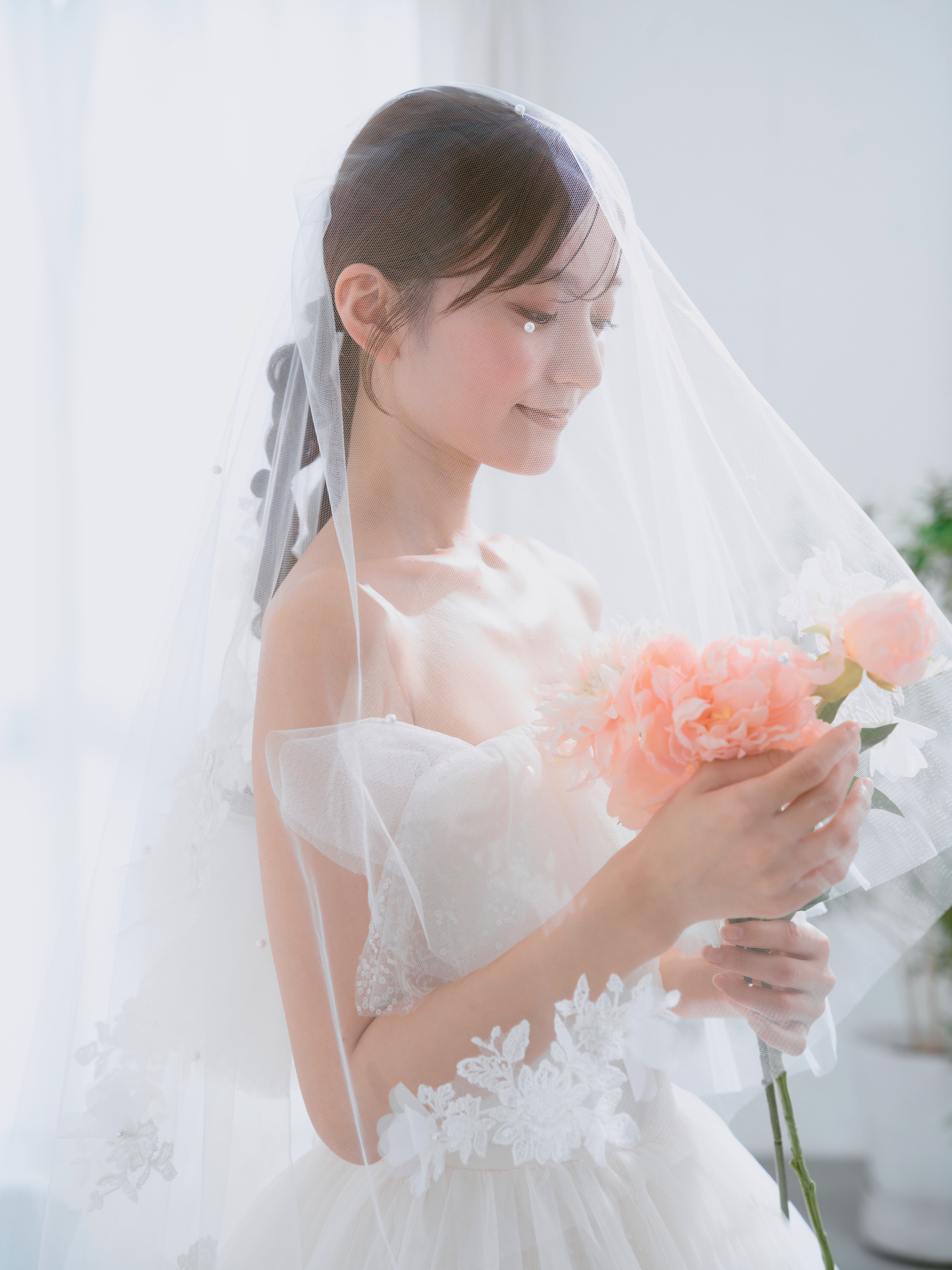 優しいレースの風合いやトレンドの立体柄モチーフで、今っぽいフォトジェニックなスタイリングが叶うオリジナルベールです。