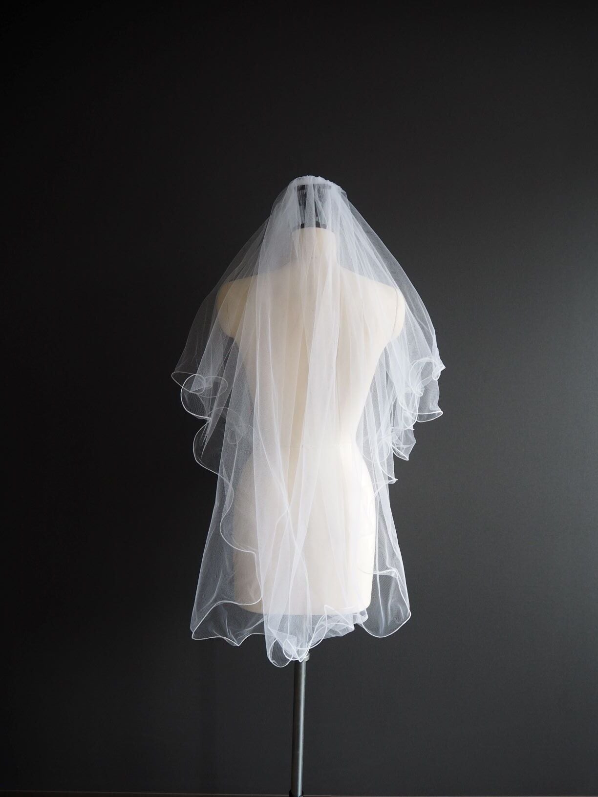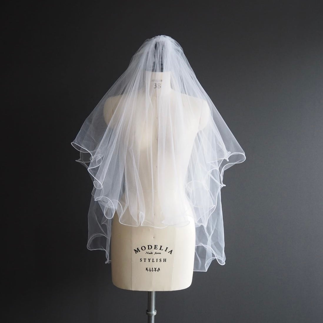 無地チュールの縁にワイヤーロック加工を施した、ふわふわ動きのあるシンプルなベール。