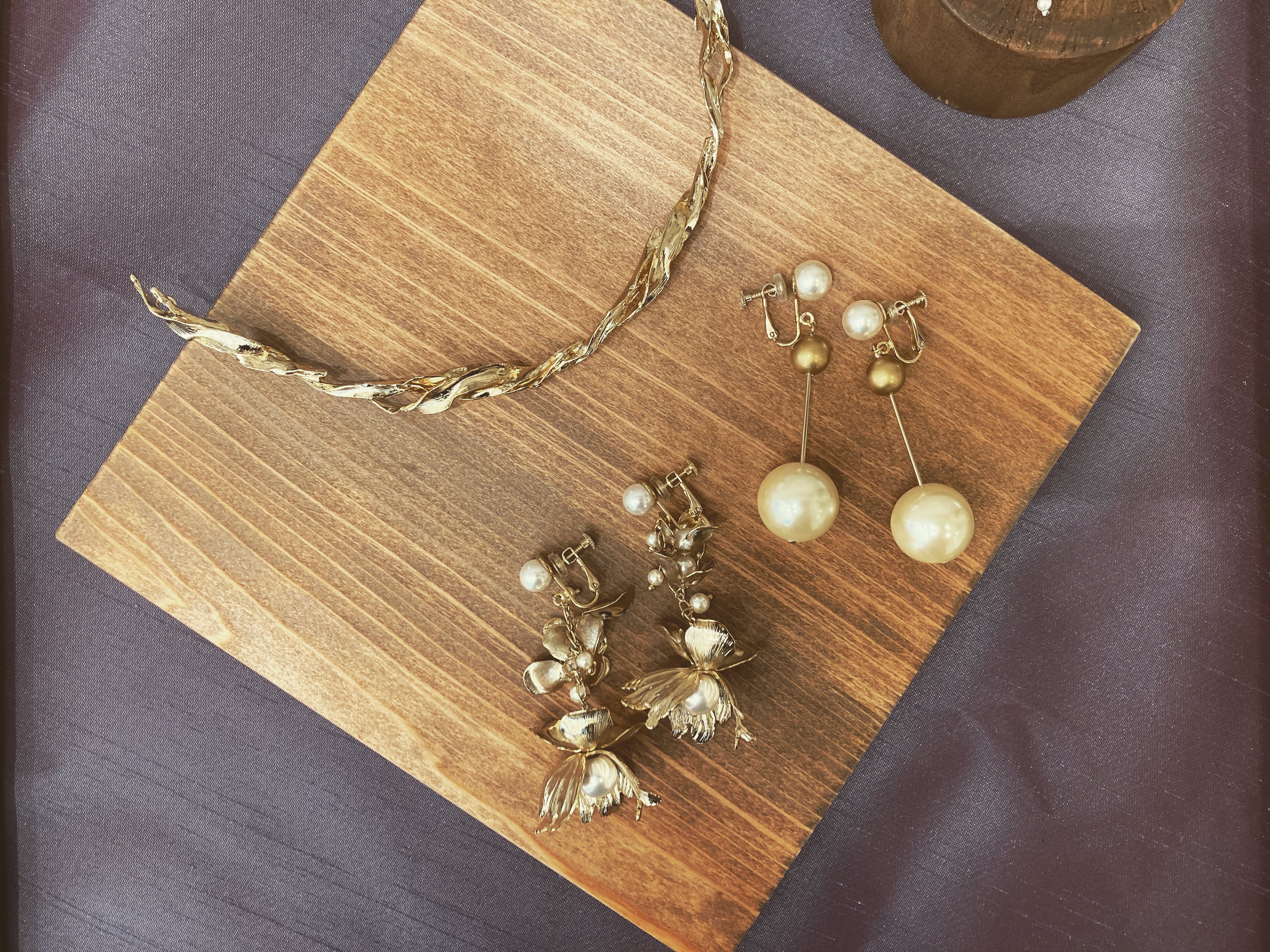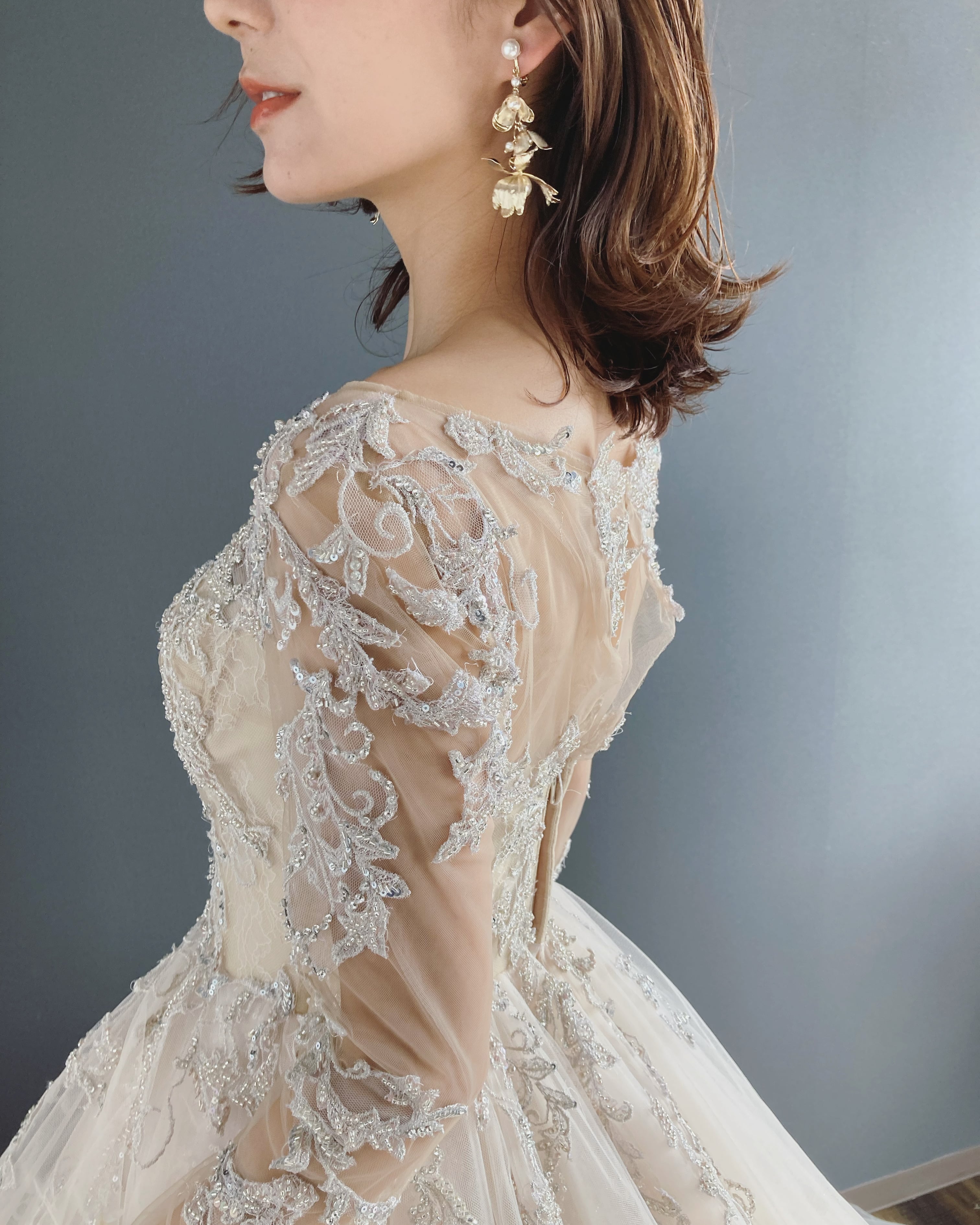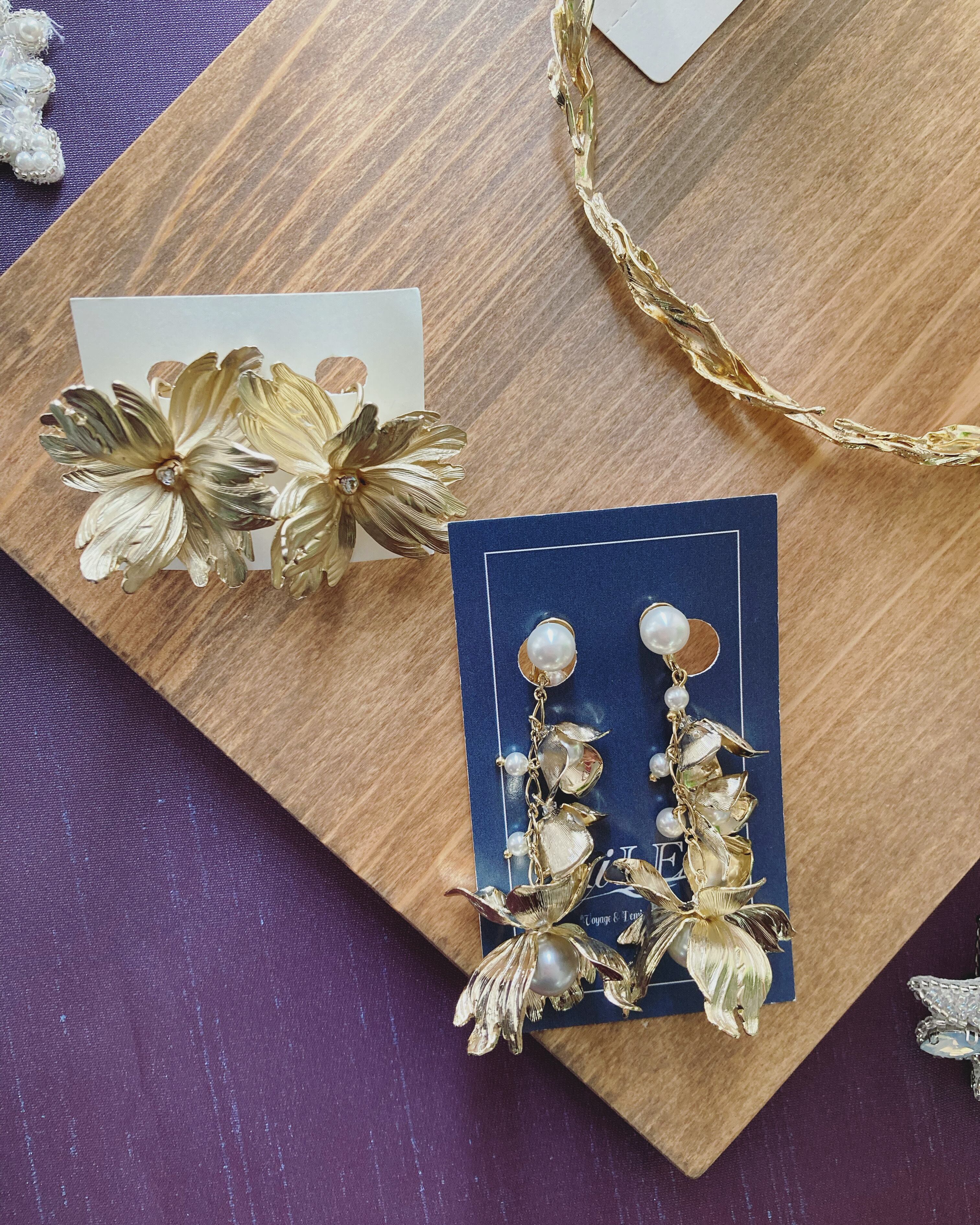 ゴールドの繊細なメタルパーツ、見え隠れするパールの組み合わせが美しくナチュラルなデザインで、
