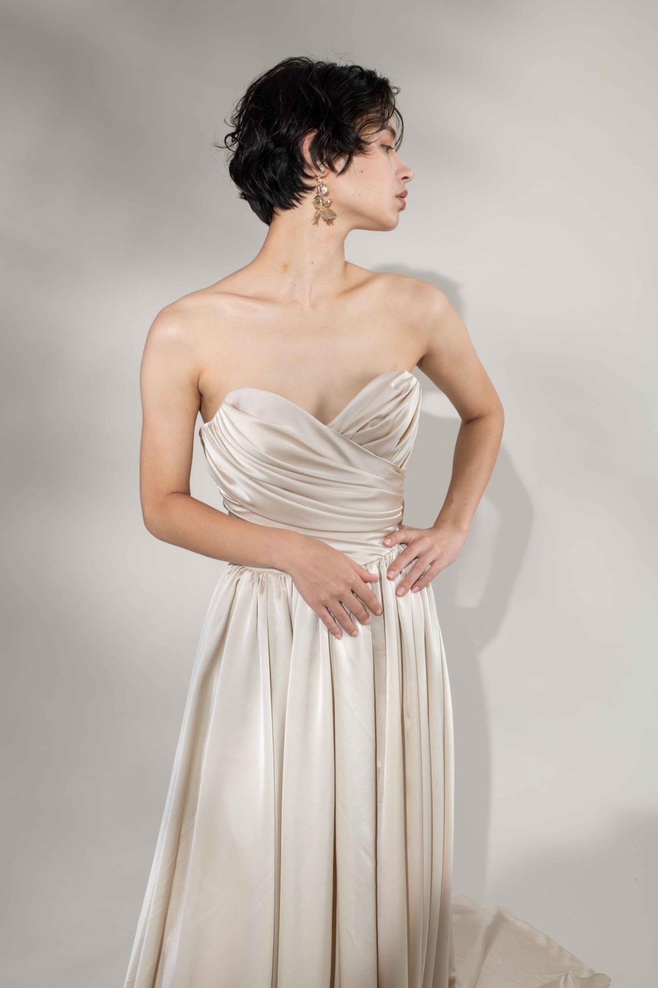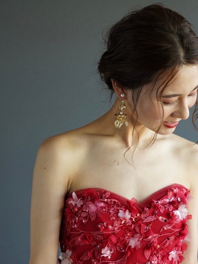 ゆらゆらスイングするニュアンスモチーフが特徴のイヤリング。