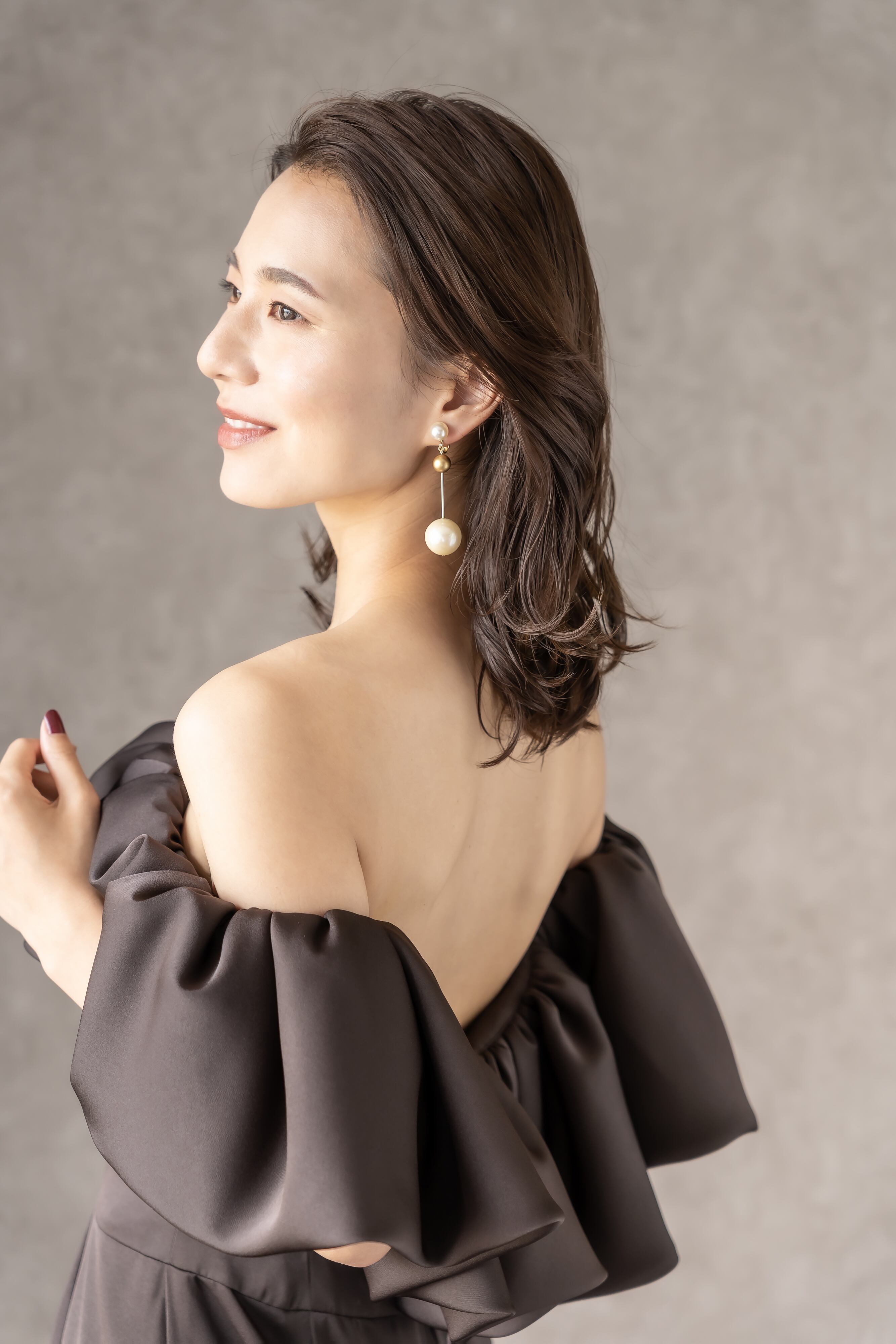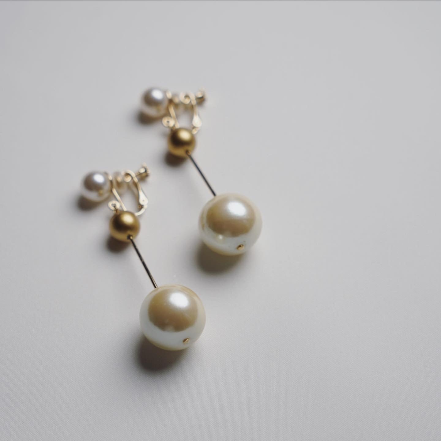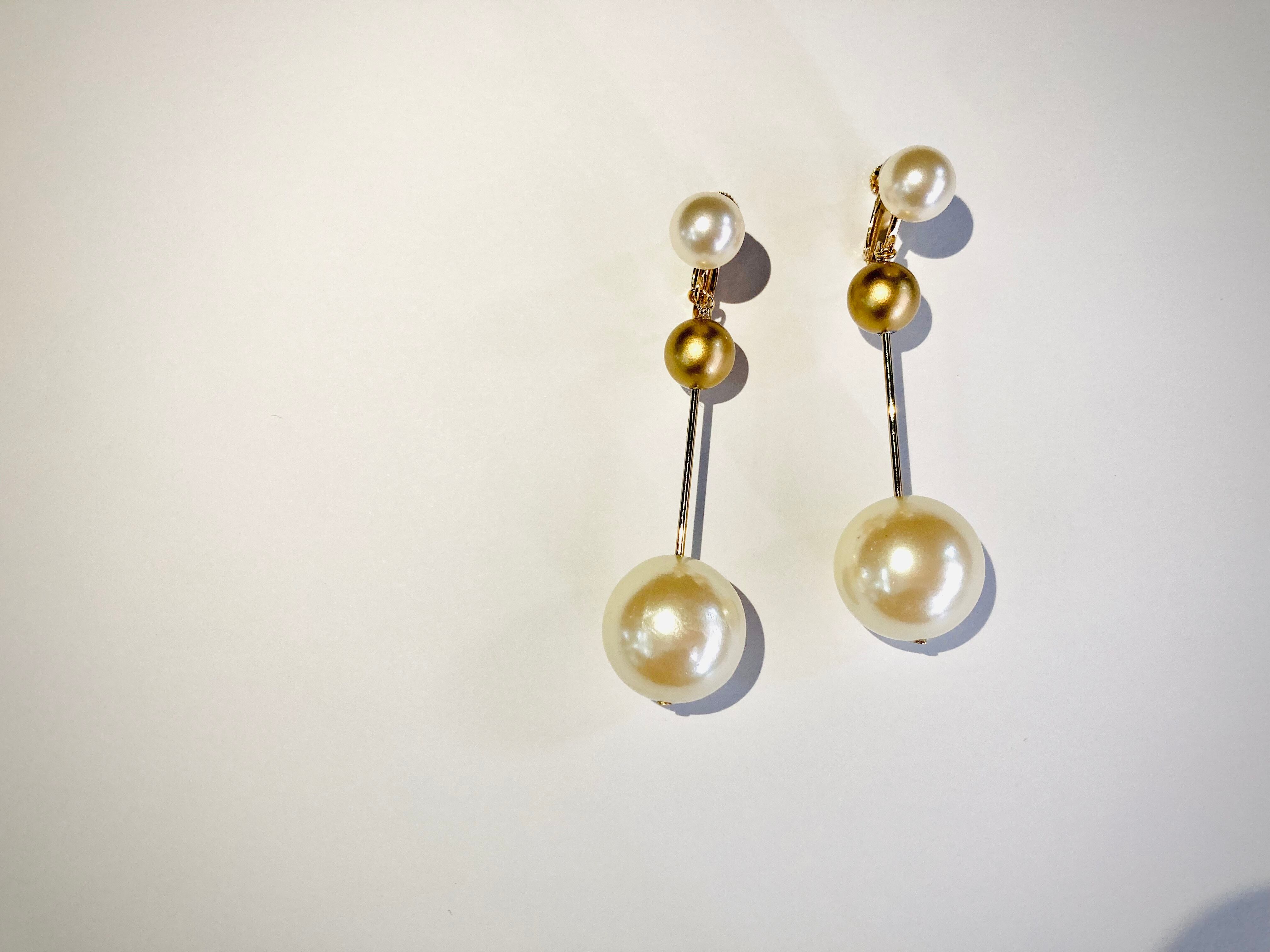 サイズやカラーの異なるスワロフスキーパールをシンプルに組み合わせた高級感が持ち味のイヤリング。