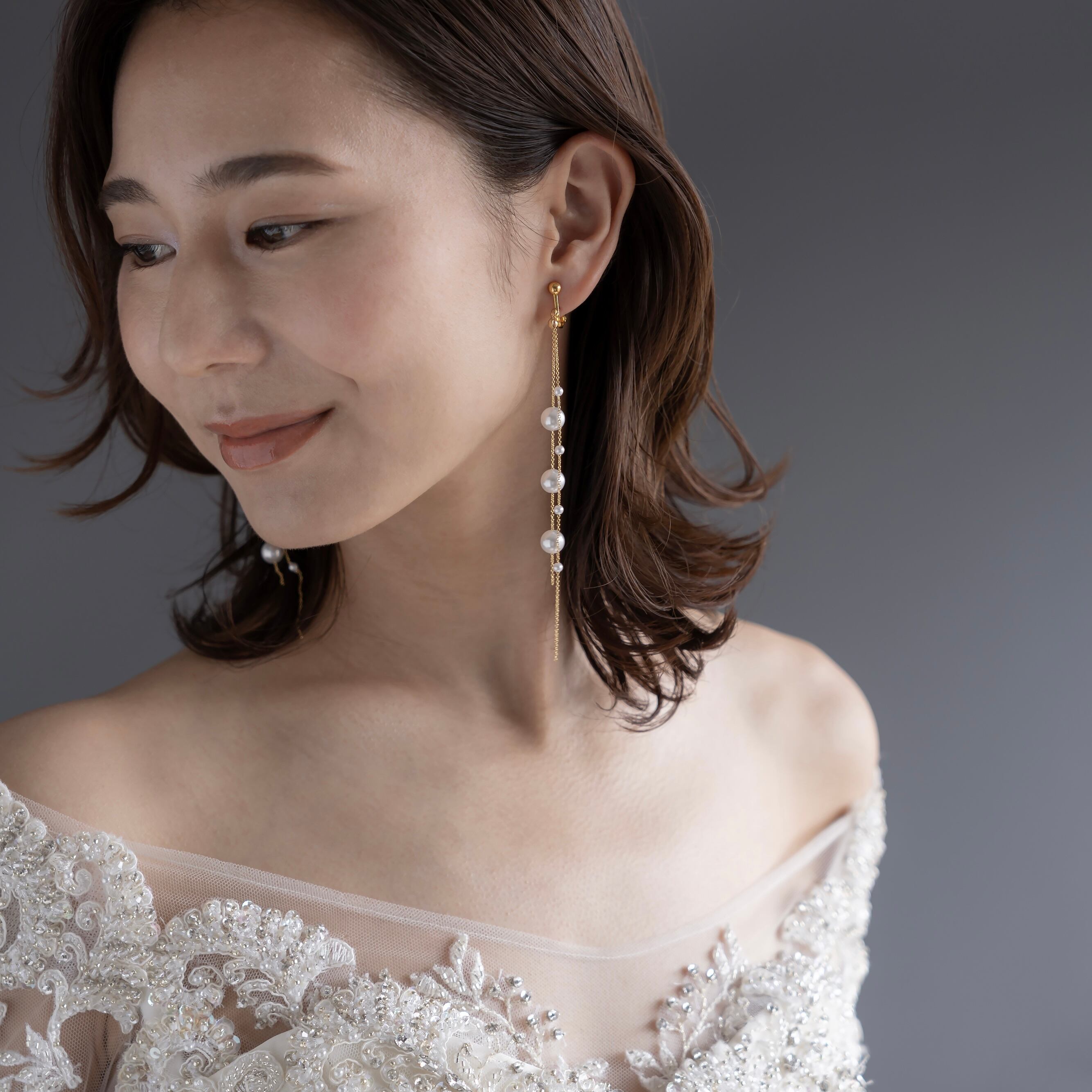 雪のしずくが落ちるような縦のシルエットは、控えめな存在感でありつつも顔回りを上品に演出します。