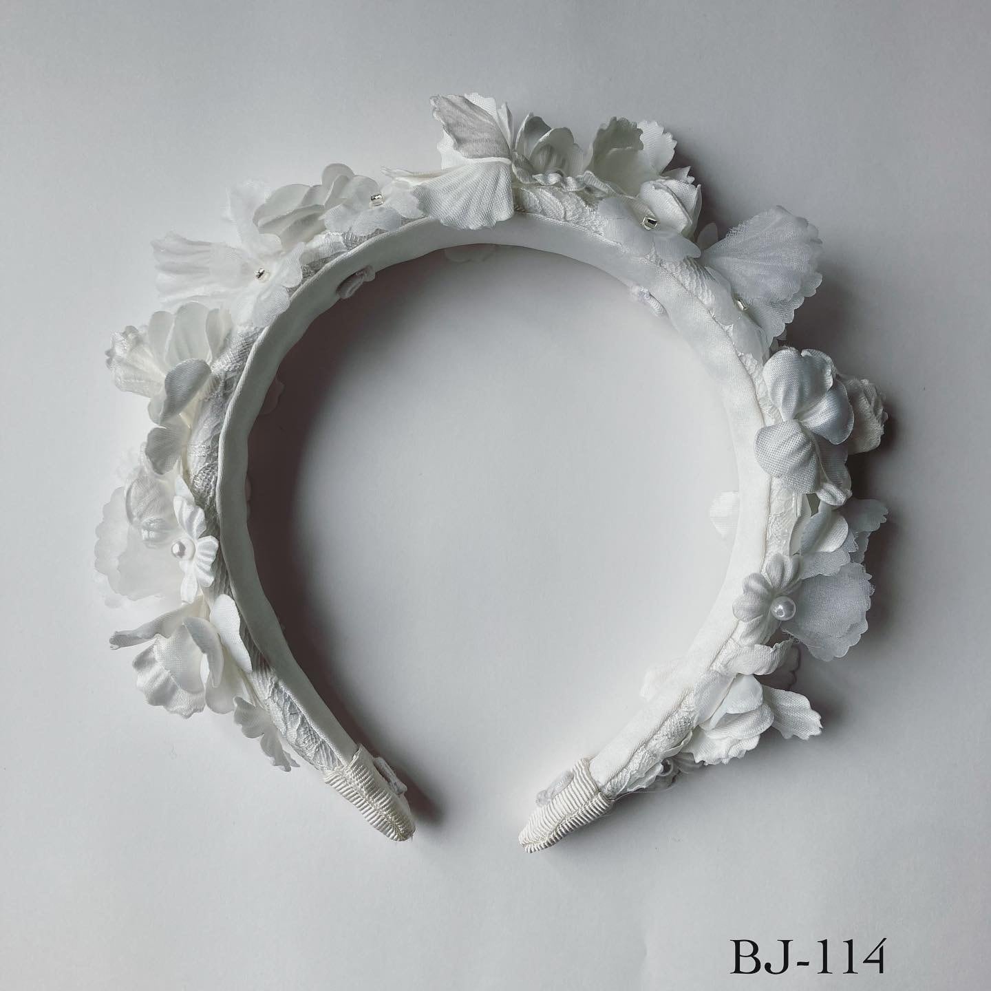 BJ-114 フラワー刺繍カチューシャ Fabric flower and beads embroidery headband