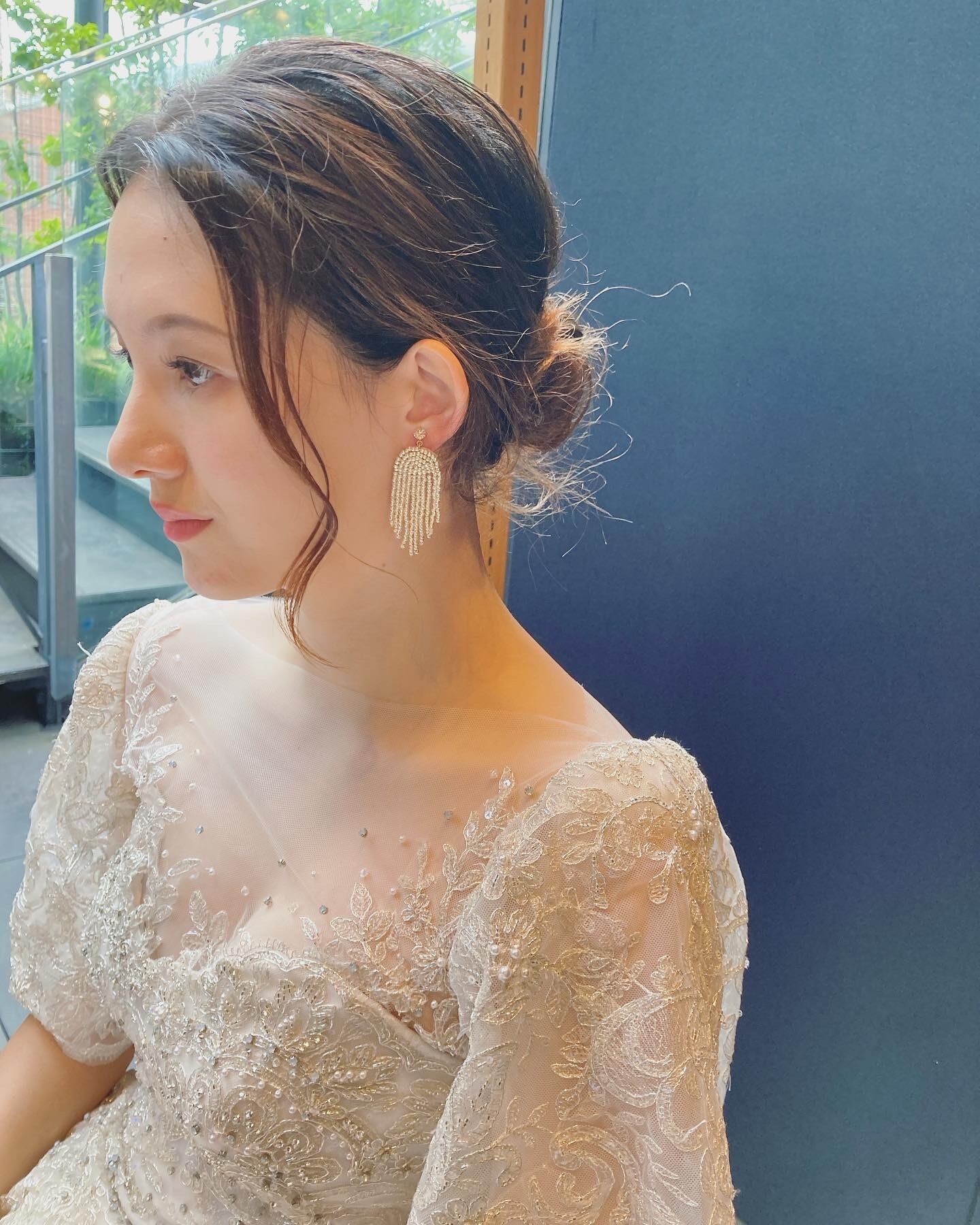 シャワー状に刺繍した個性的なデザインのイヤリング。