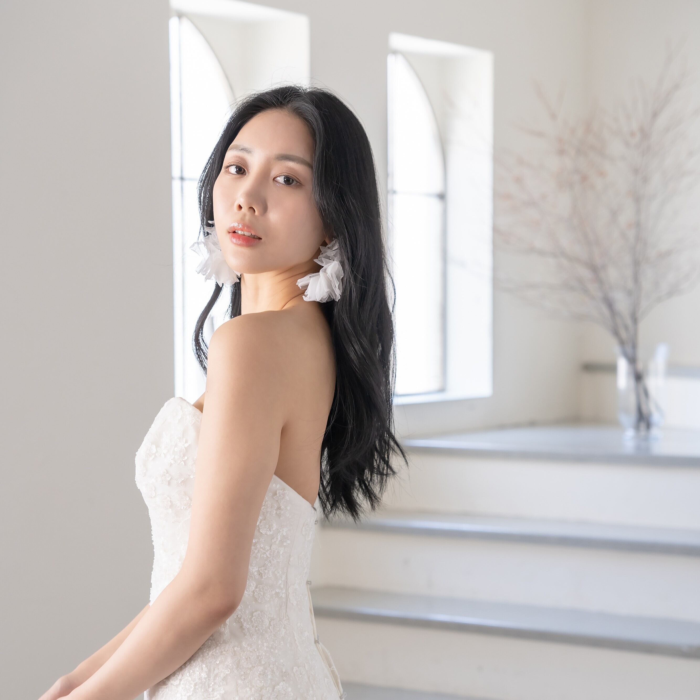 [Ivory]大ぶりニュアンスファブリックフラワーイヤリング Statement Fabric Nuance Flower Earrings BJ-147-Ivory
