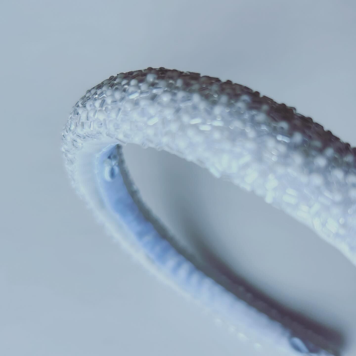 キラキラ光る細かいビーズが一面に輝く豪華な印象のカチューシャ。