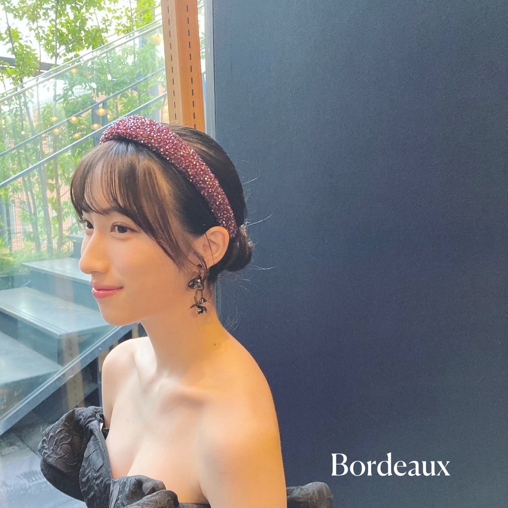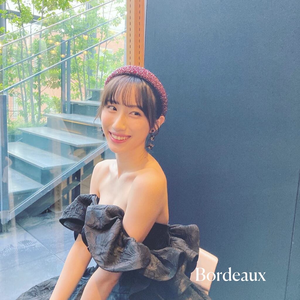 ボルドーやレッドのシンプルなカラードレスと合わせるとかなり今っぽいトレンドなスタイリングになります。
