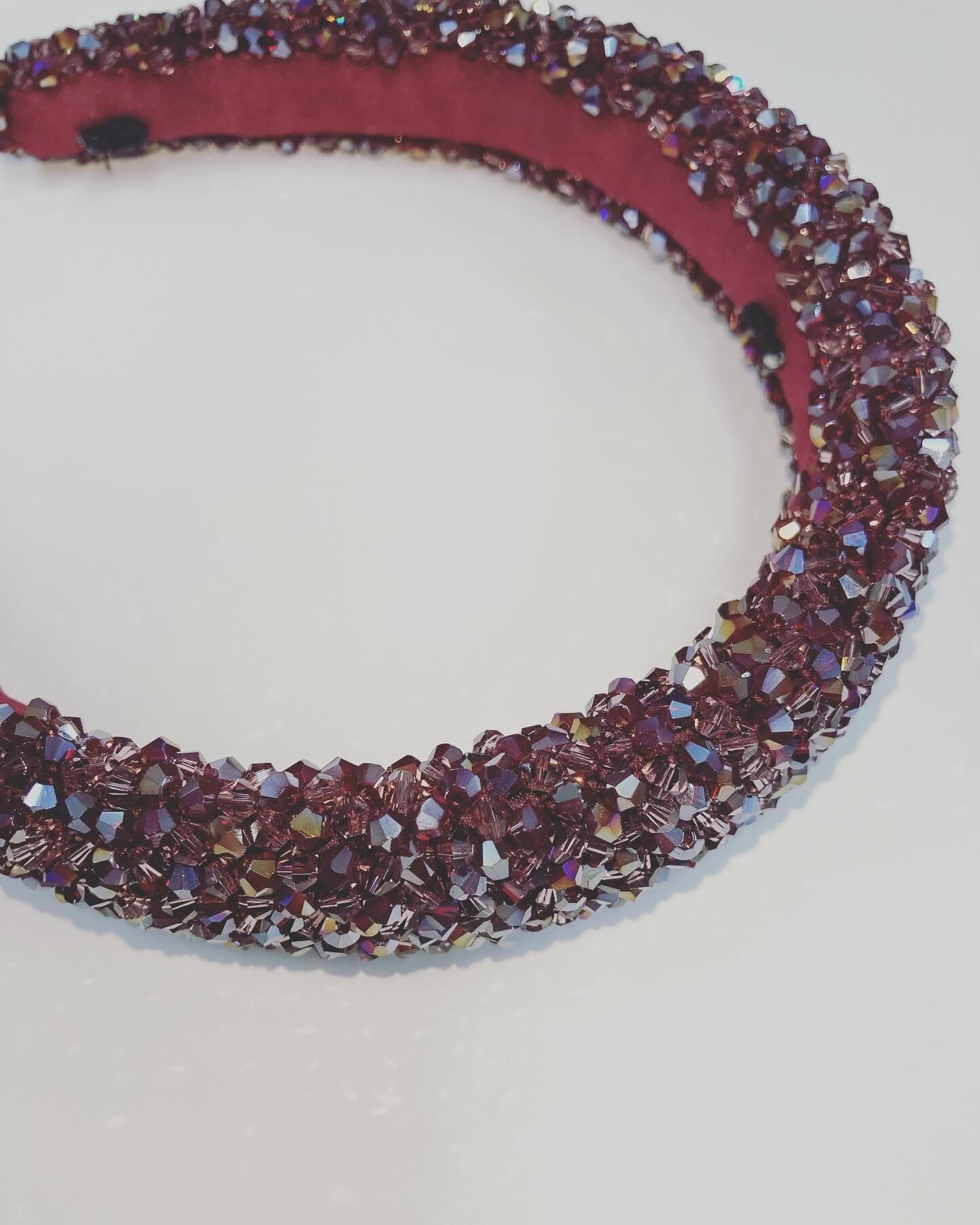 キラキラ光るクリスタルが一面に輝く豪華な印象のカチューシャ。
