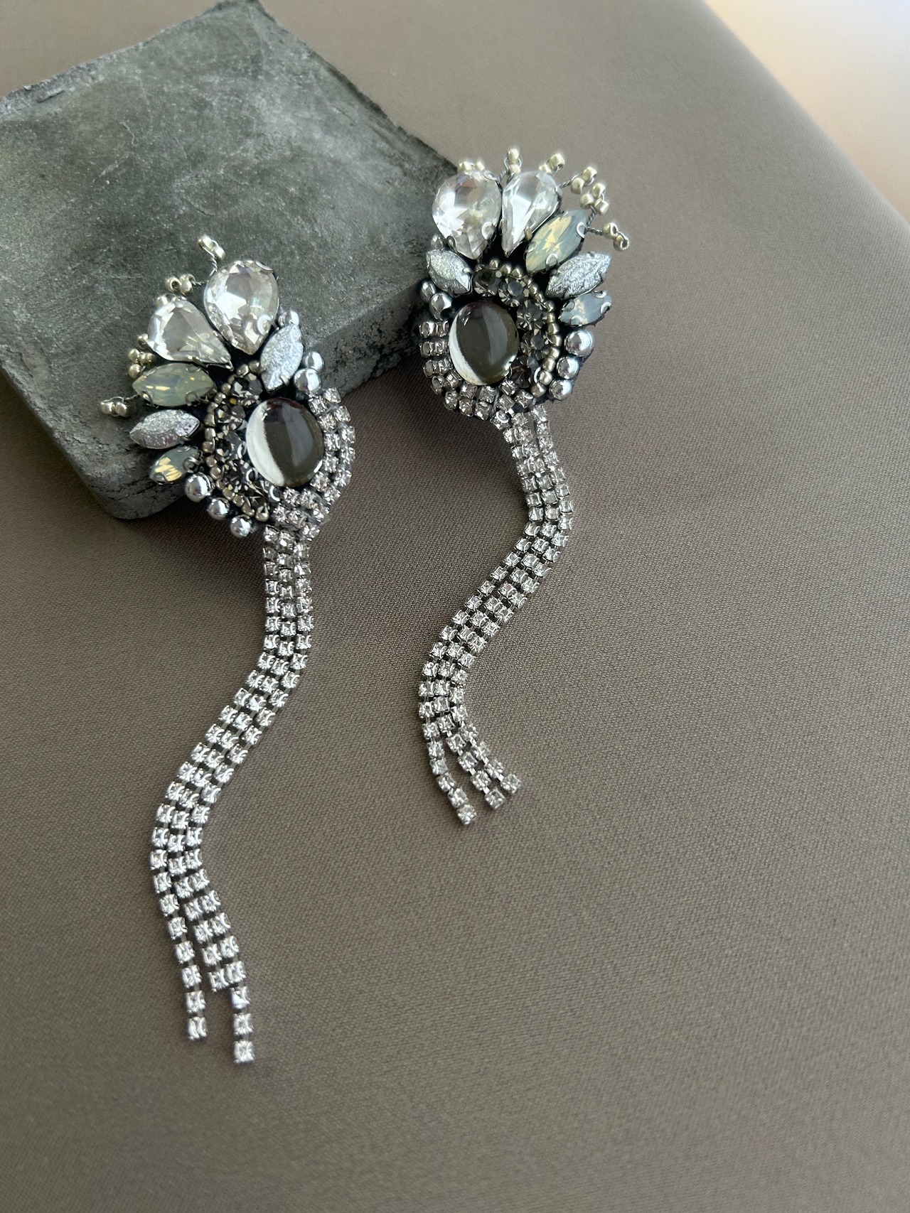 中心にグレーのスワロフスキークリスタルを据え、その周りをエッジィな色で構成したクールなカラーリング。