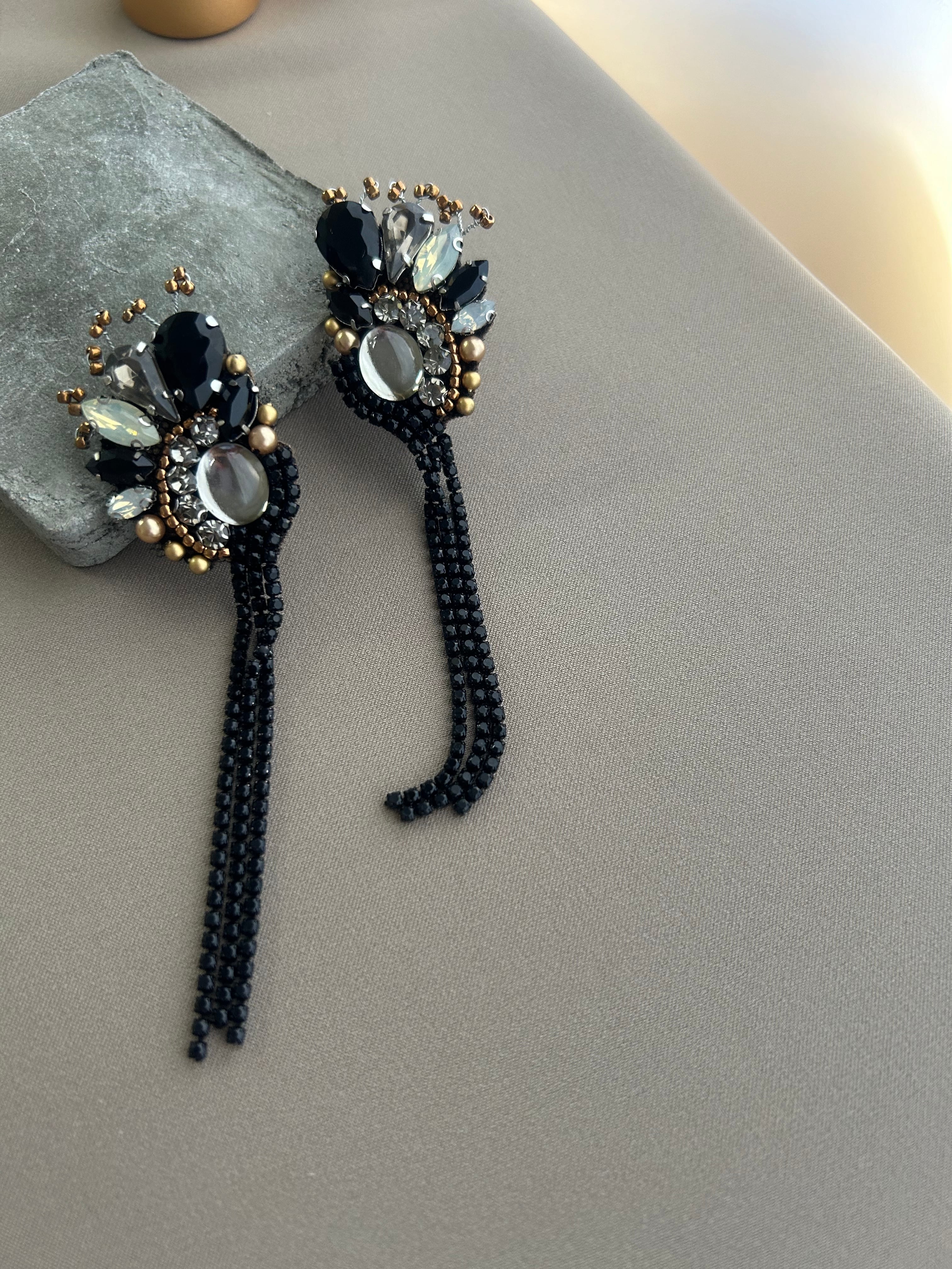 色合わせと素材にこだわったスタイリッシュな刺繍イヤリング。