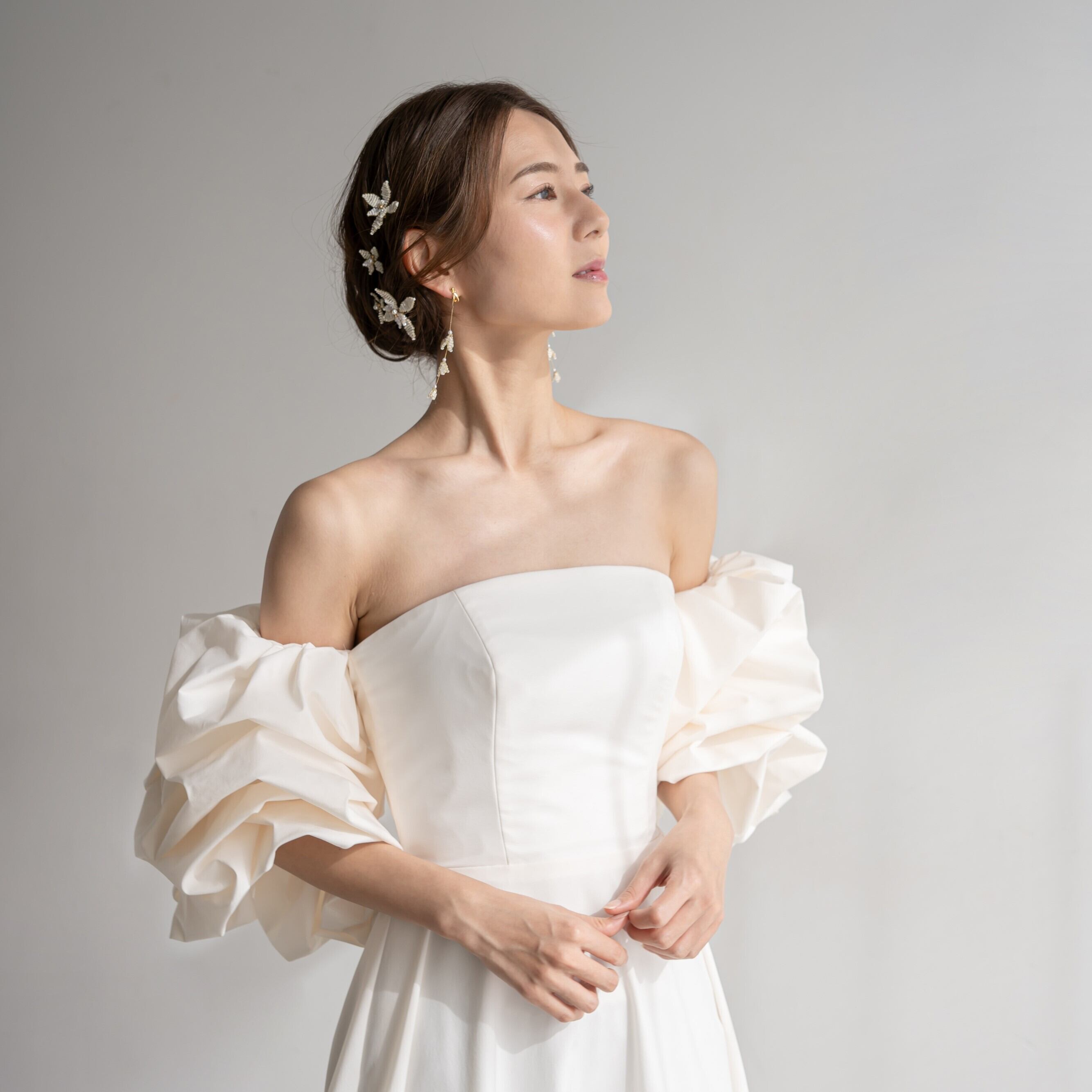 おそろいの素材を使ったヘアピン(BJ-184)と合わせたコーディネートがおすすめです。