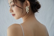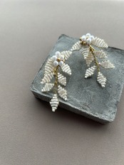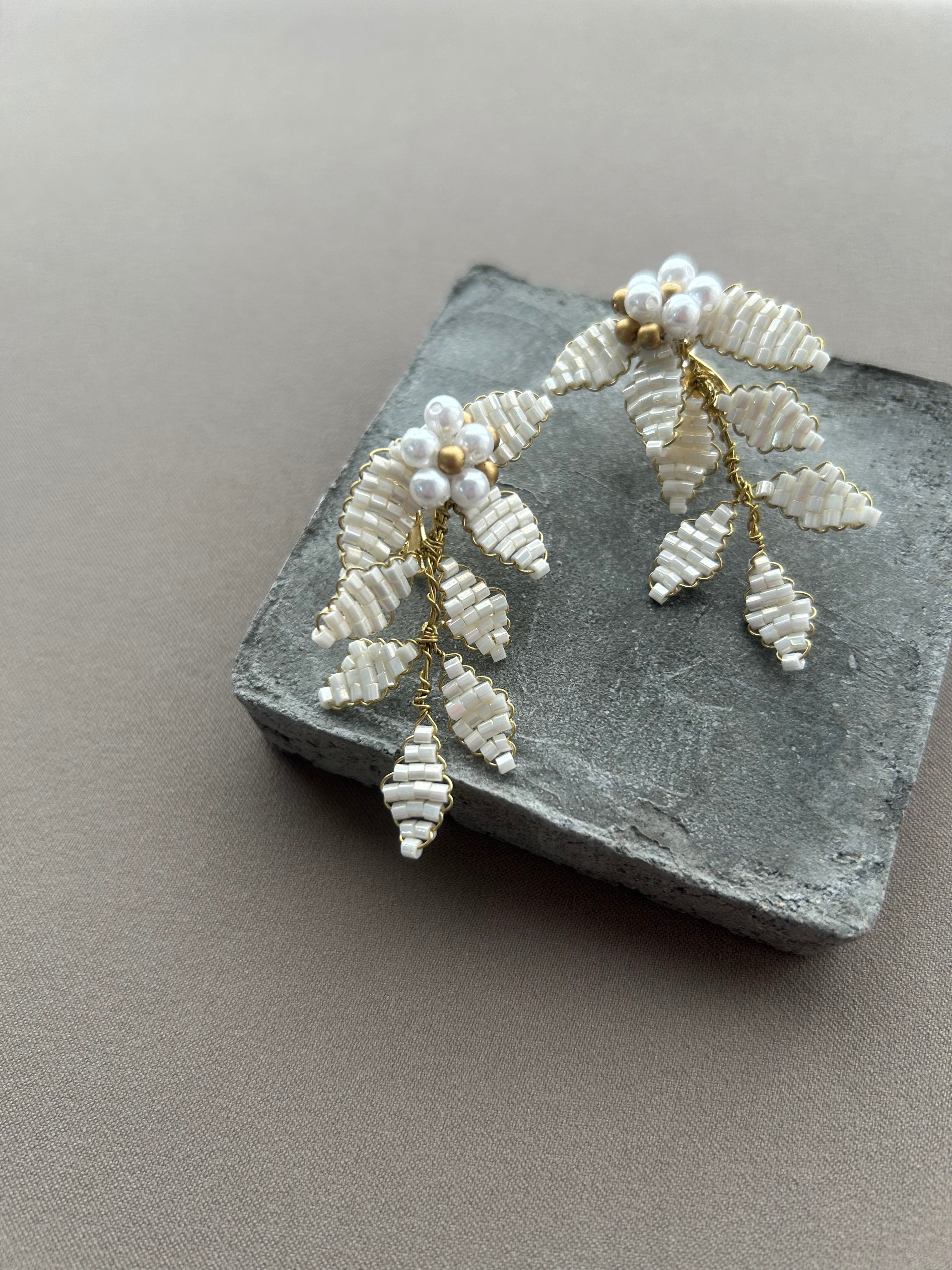 柔らかい色合いのアイボリーホワイトビーズで形どったリーフモチーフを