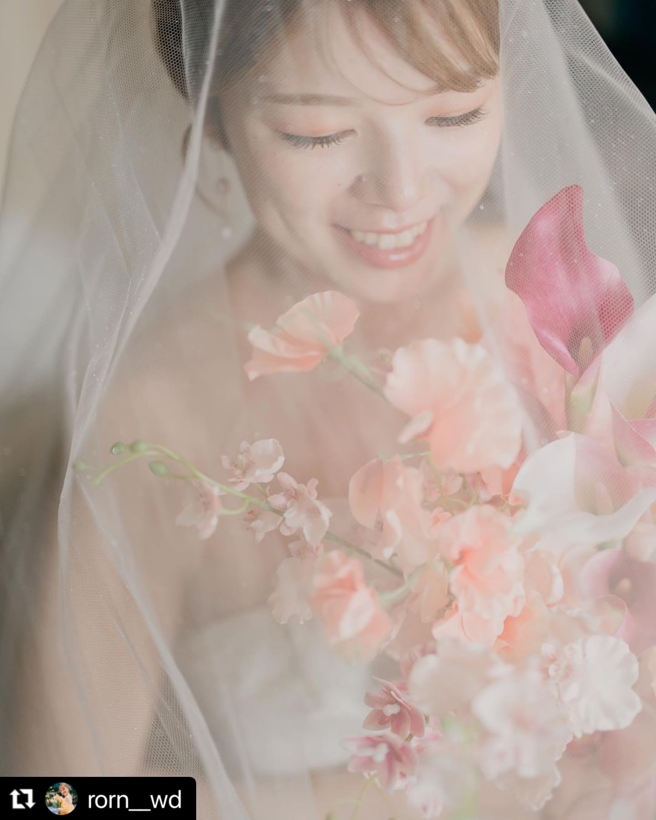 ソフトなラメチュールで仕立てたシンプルなベール。