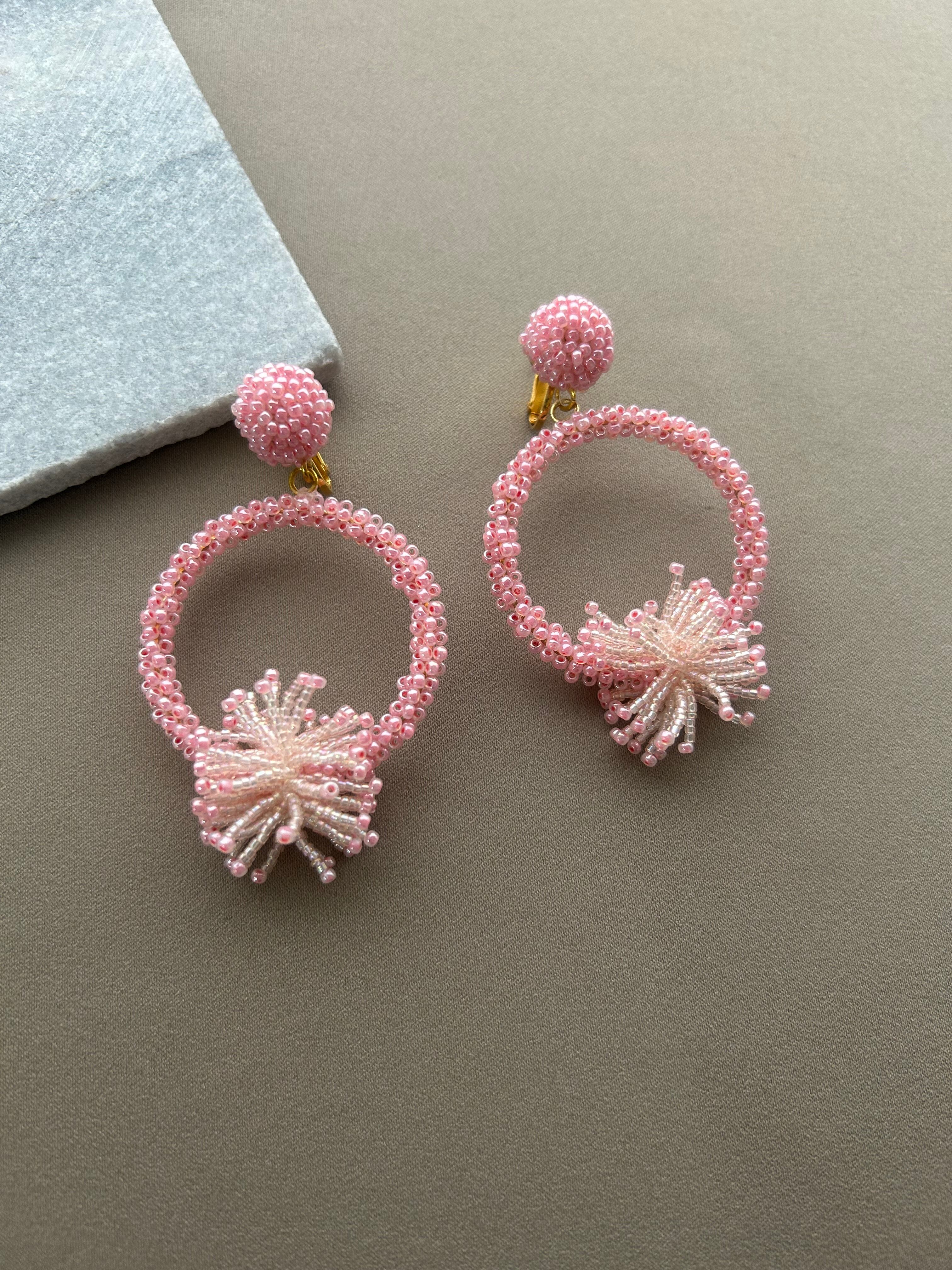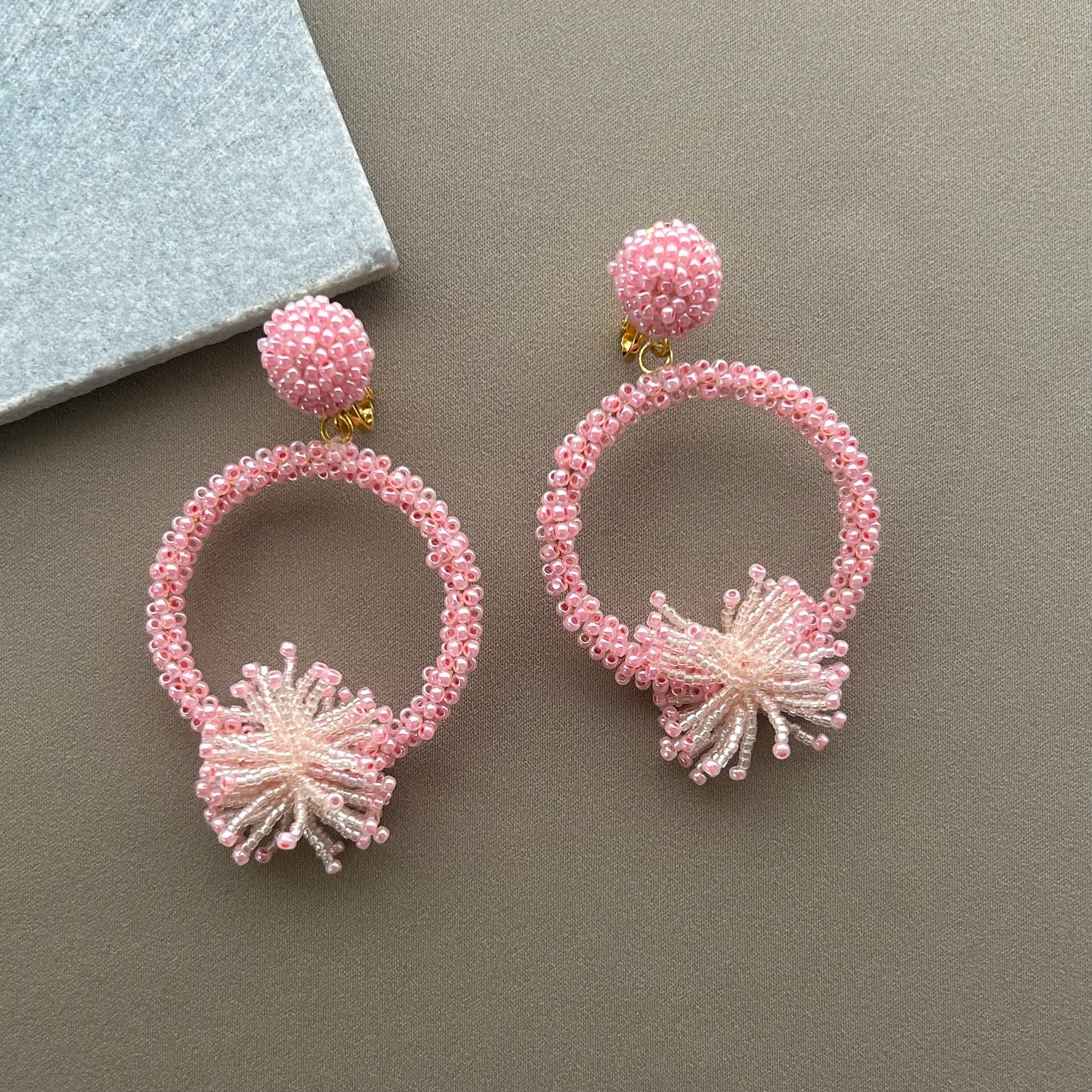 (Pink)Statement hoop beads earrings BJ-164 Pink