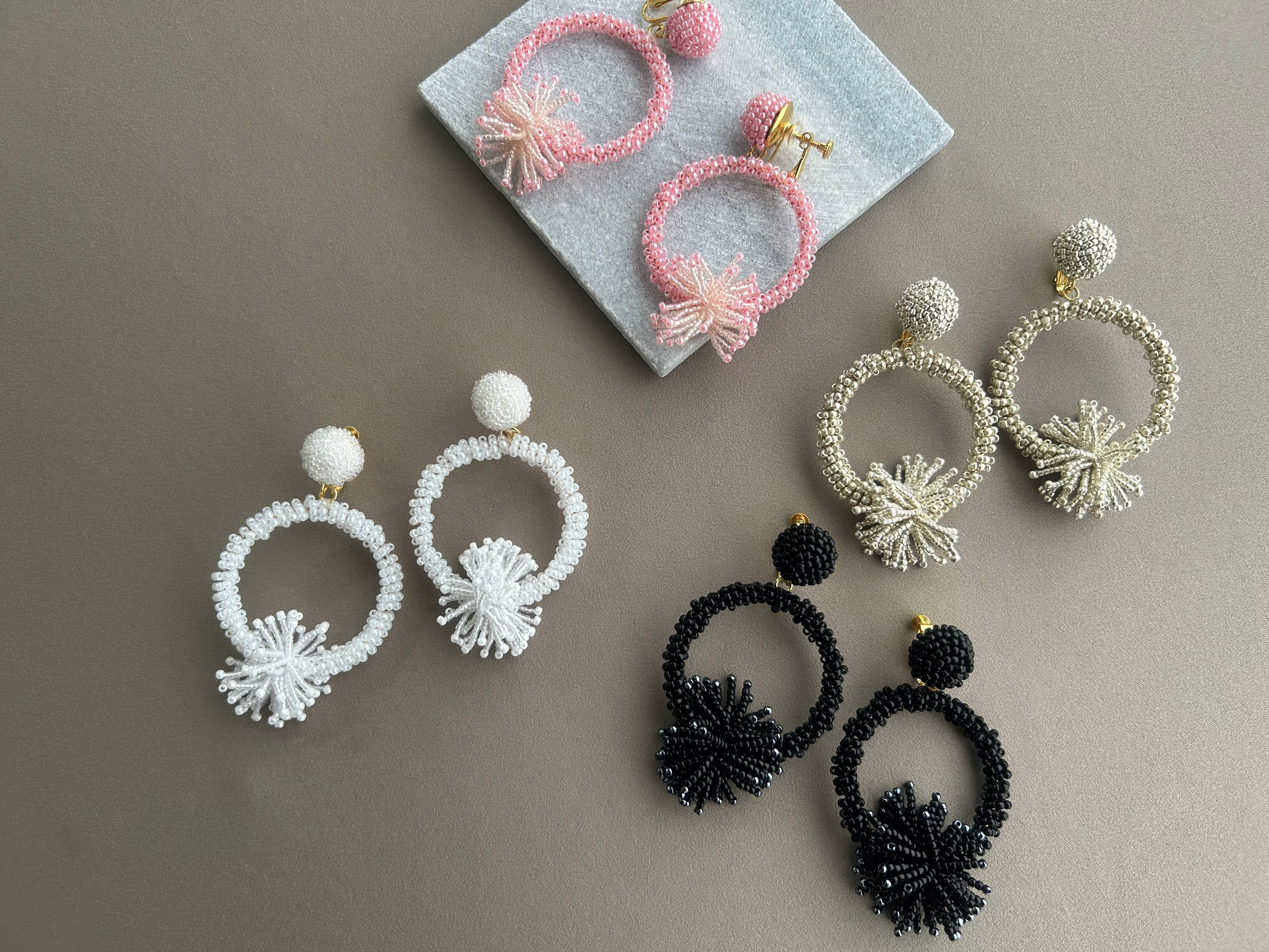 限られた素材のみを使用し、高級感にこだわったビーズイヤリング。